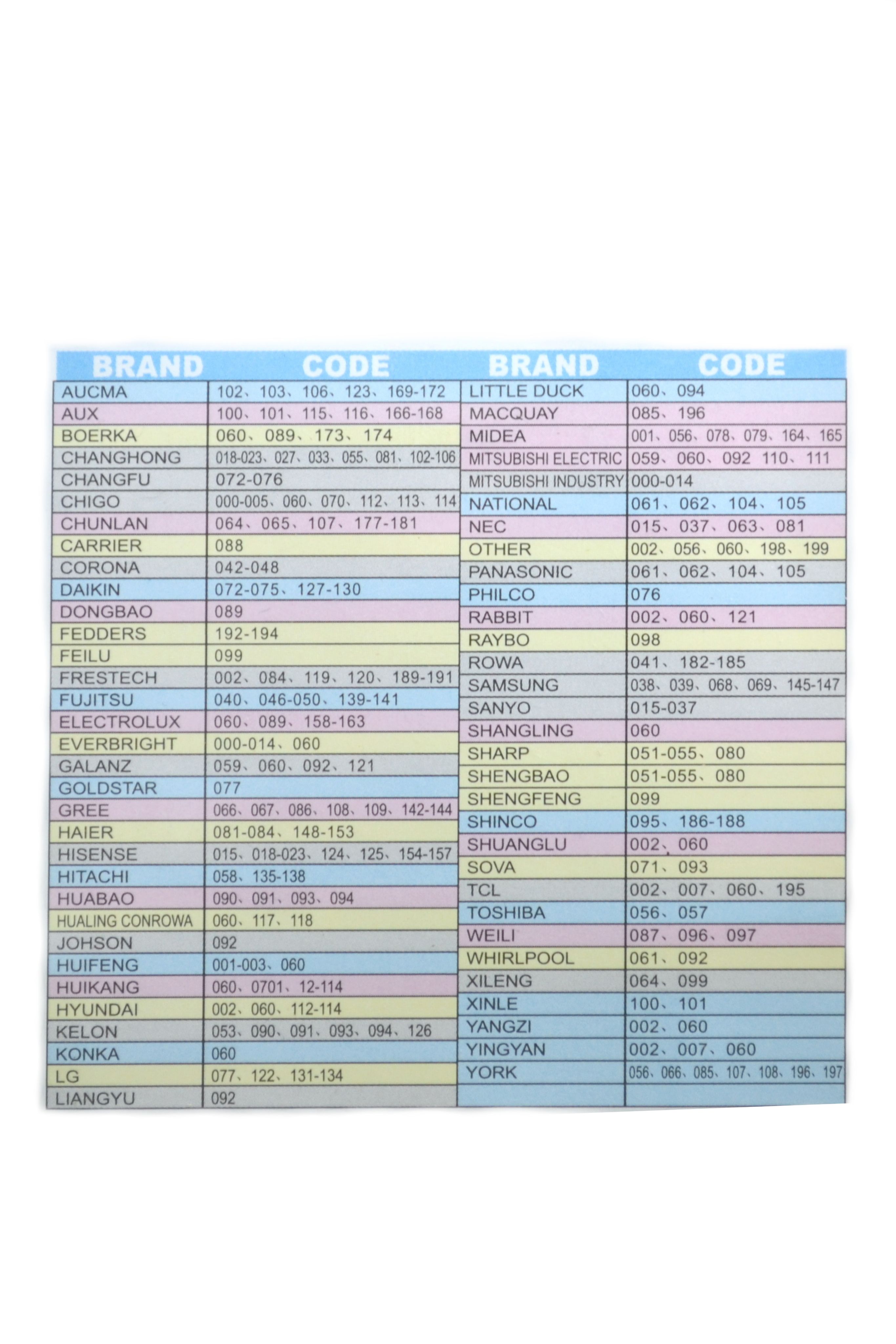 Настроить пульт на работу с Вашим кондиционером можно, выбрав модель кондиционера из базы пульта с помощью таблицы кодов, или автопоиском, если "родной" пульт Вашего кондиционера неизвестен.