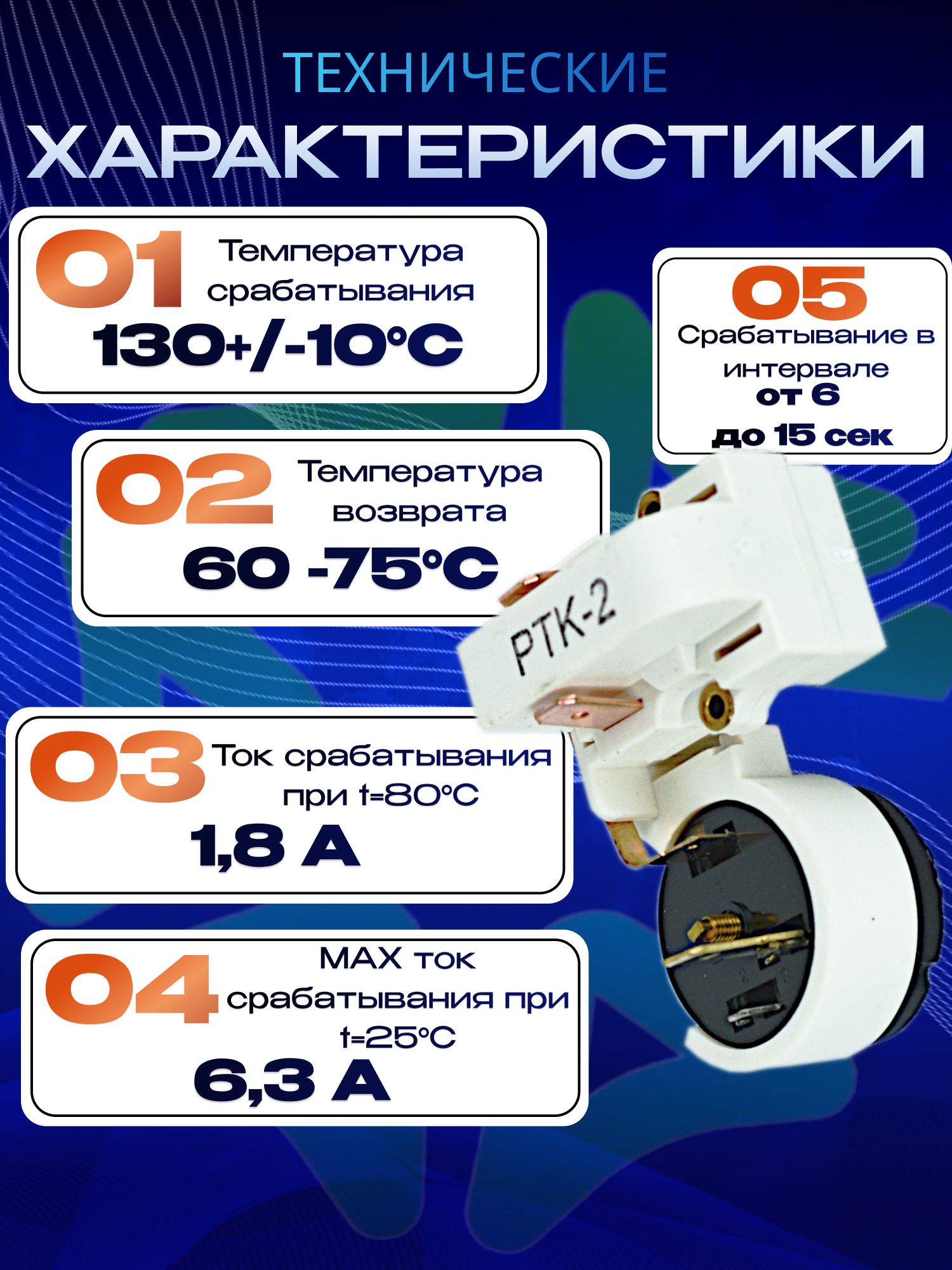 - Температура срабатывания: 130°С+…-10°С;