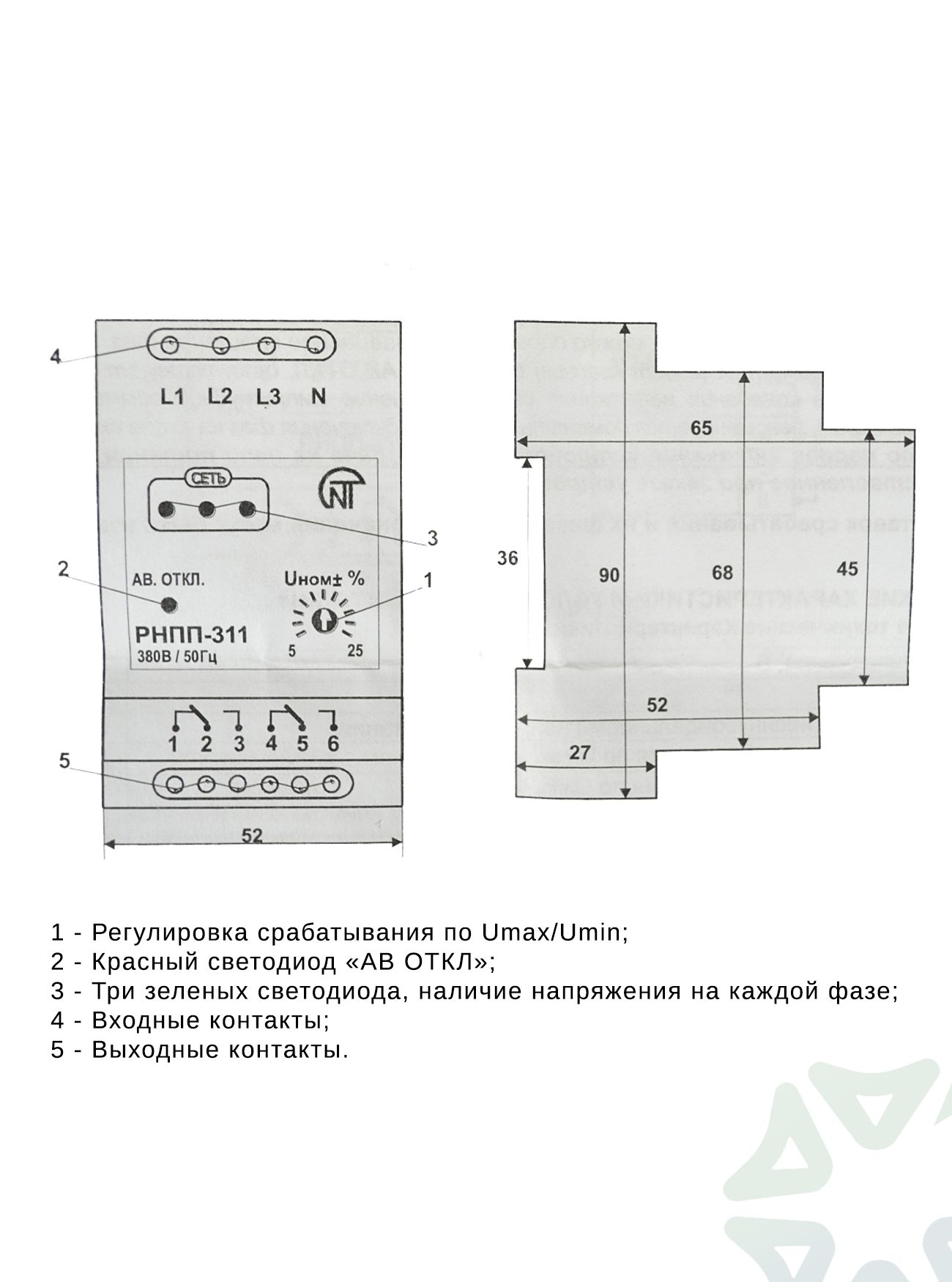 Основные преимущества и функции реле заключаются в его способности обеспечивать надежную защиту электрооборудования от повреждений, вызванных нестабильным напряжением. Устройство оснащено независимой системой питания от каждой из трех фаз, что гарантирует его стабильную работу даже при значительных колебаниях напряжения в сети. Благодаря цифровой обработке сигнала, реле отличается высокой точностью и не требует дополнительной настройки со стороны пользователя.Реле напряжения РНПП-311 имеет 2 полюса, это означает, что устройство способно управлять двумя независимыми цепями нагрузки, что позволяет эффективно использовать его для защиты трехфазных потребителей. Несмотря на то, что реле контролирует трехфазную сеть, его полюсность составляет 2, что связано с конструкцией контактных групп, обеспечивающих включение и отключение нагрузки в соответствии с заданными параметрами контроля напряжения.