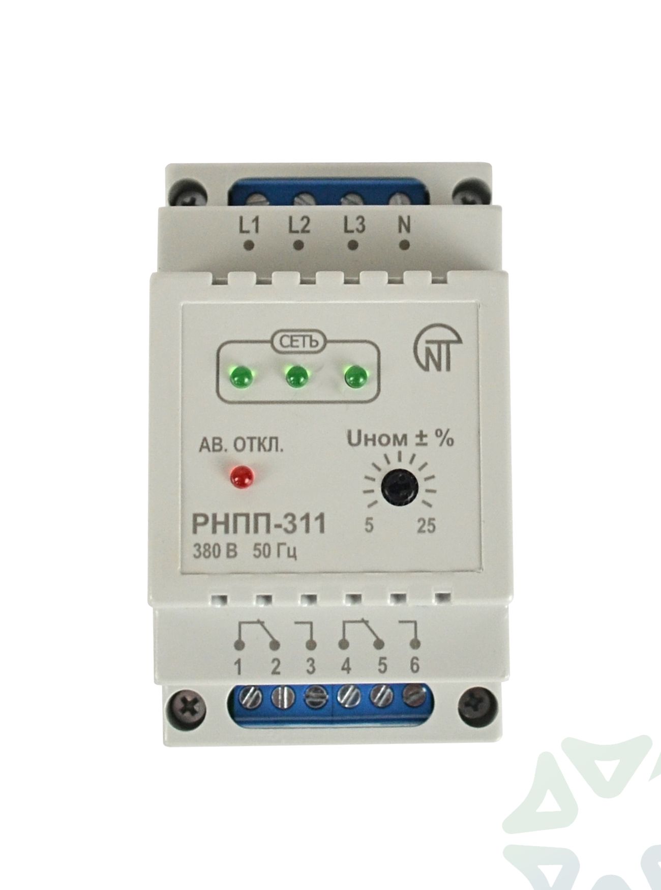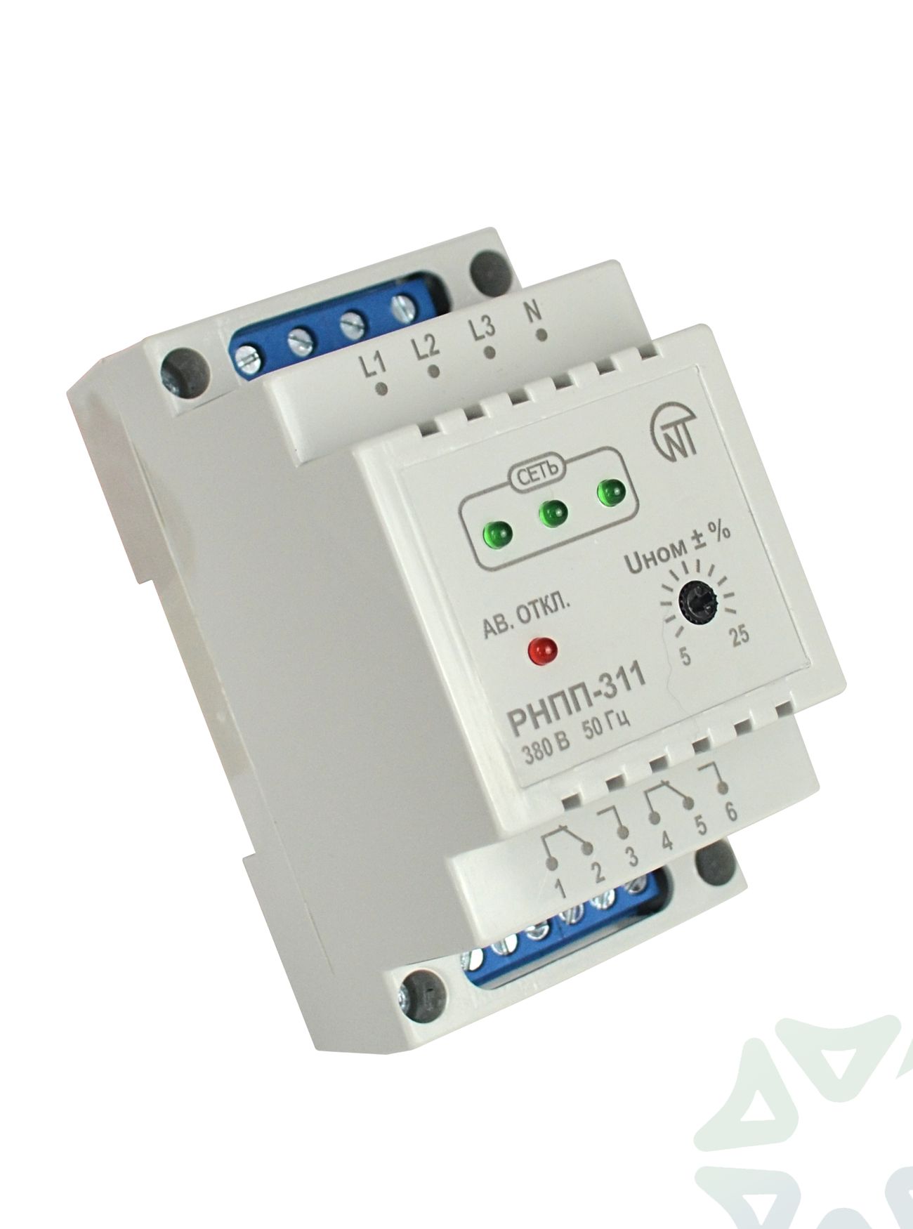 Реле напряжения, перекоса и последовательности фаз РНПП-311 — это многофункциональное устройство, предназначенное для контроля и защиты трехфазной электросети (380/400 В) от недопустимых колебаний напряжения. Оно обеспечивает защиту подключенного оборудования, автоматически отключая его при выходе параметров сети за установленные пределы.