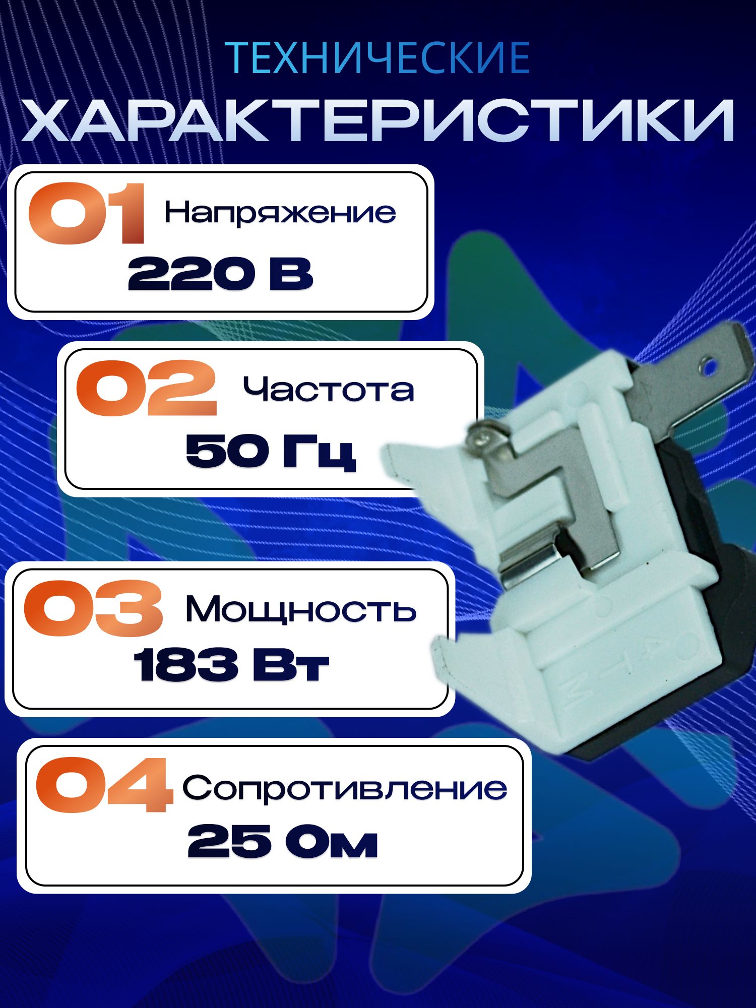 Технические характеристики пускового реле 4ТМ 1/4HP: