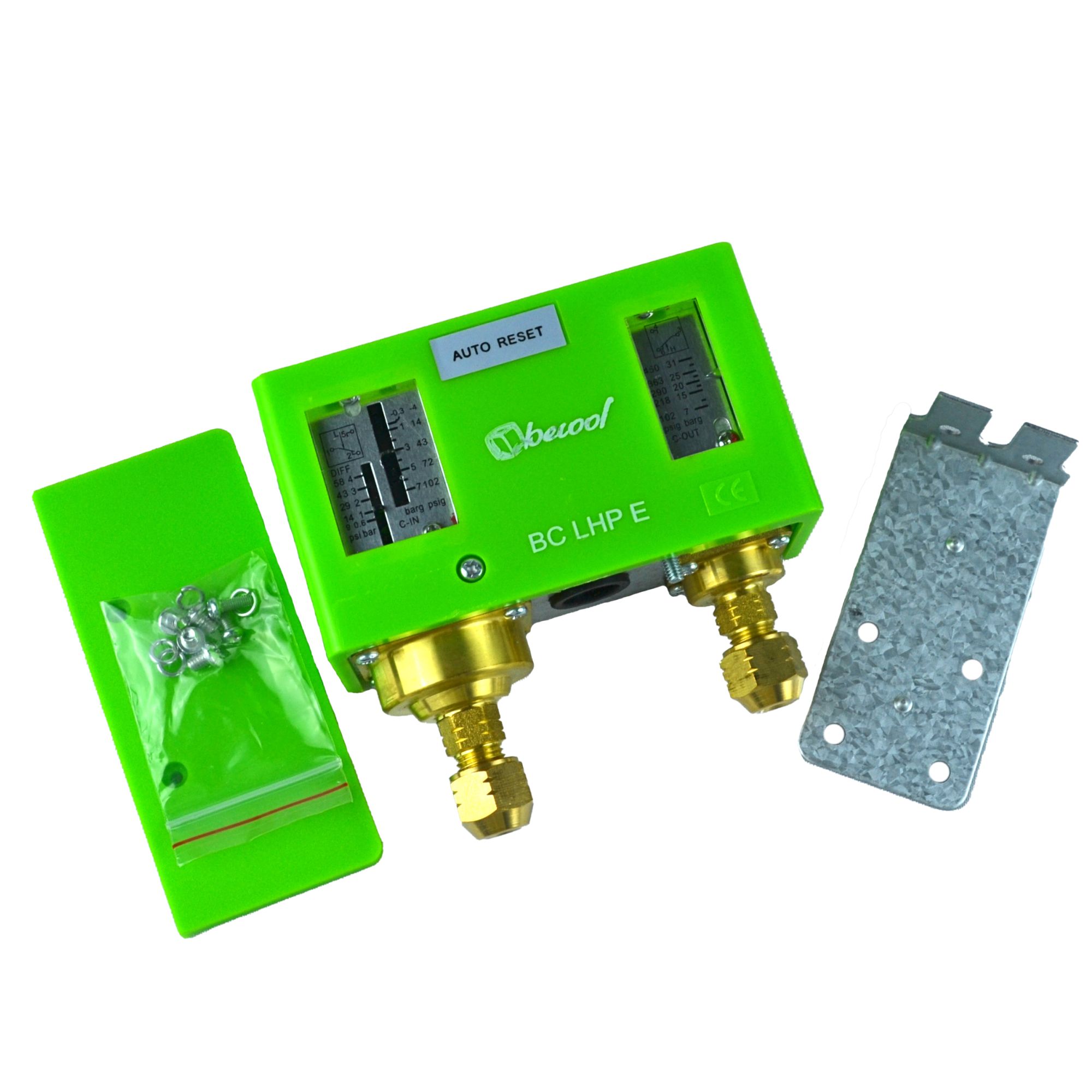 Реле давления (сдвоенное) BC LHP E от бренда becool предназначено для использования в холодильных установках и системах кондиционирования воздуха, тепловых насосах, чиллерах с целью защиты системы от чрезмерно низкого давления всасывания и чрезмерно высокого давления нагнетания.