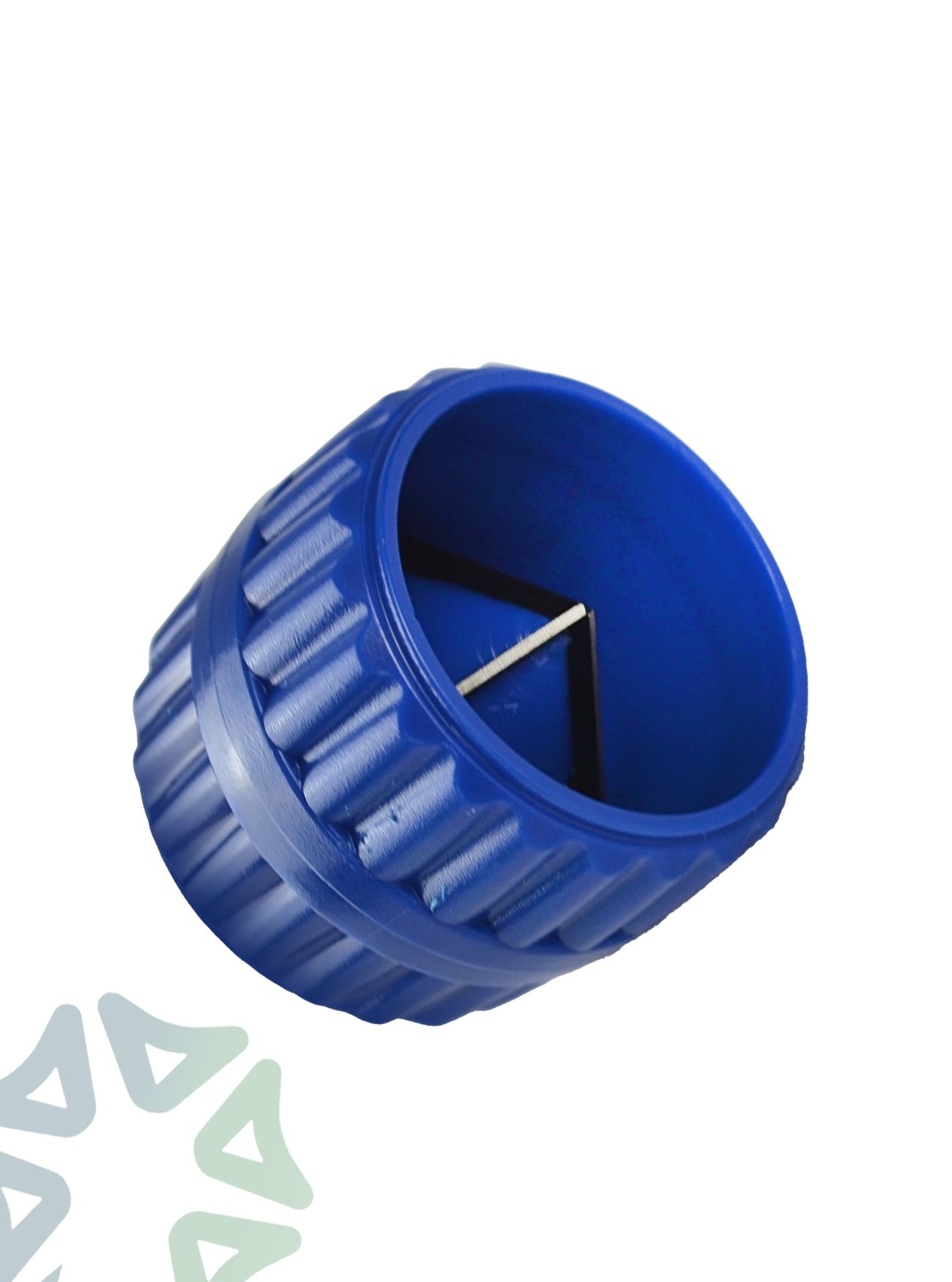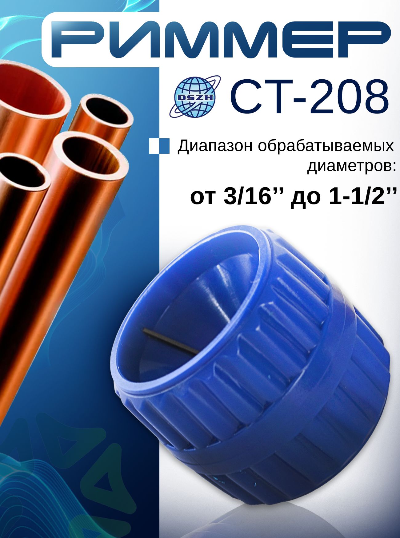 Риммер (бочонок) CT-208 от DSZH — это профессиональное устройство для снятия заусенцев (фасок) с медных и алюминиевых труб. Этот инструмент незаменим при работе с трубами после их резки для обеспечения гладкости и безопасности краёв. Его уникальный дизайн позволяет эффективно снимать заусенцы как внутри, так и снаружи труб диаметром от 3/16" до 1-1/2". Корпус фаскоснимателя изготовлен из прочного и легкого пластика, что делает его удобным в использовании и повышает долговечность инструмента. Резцы выполнены из специальной инструментальной стали, что гарантирует высокую прочность и стойкость к износу, позволяя обработать множество труб без потери качества.