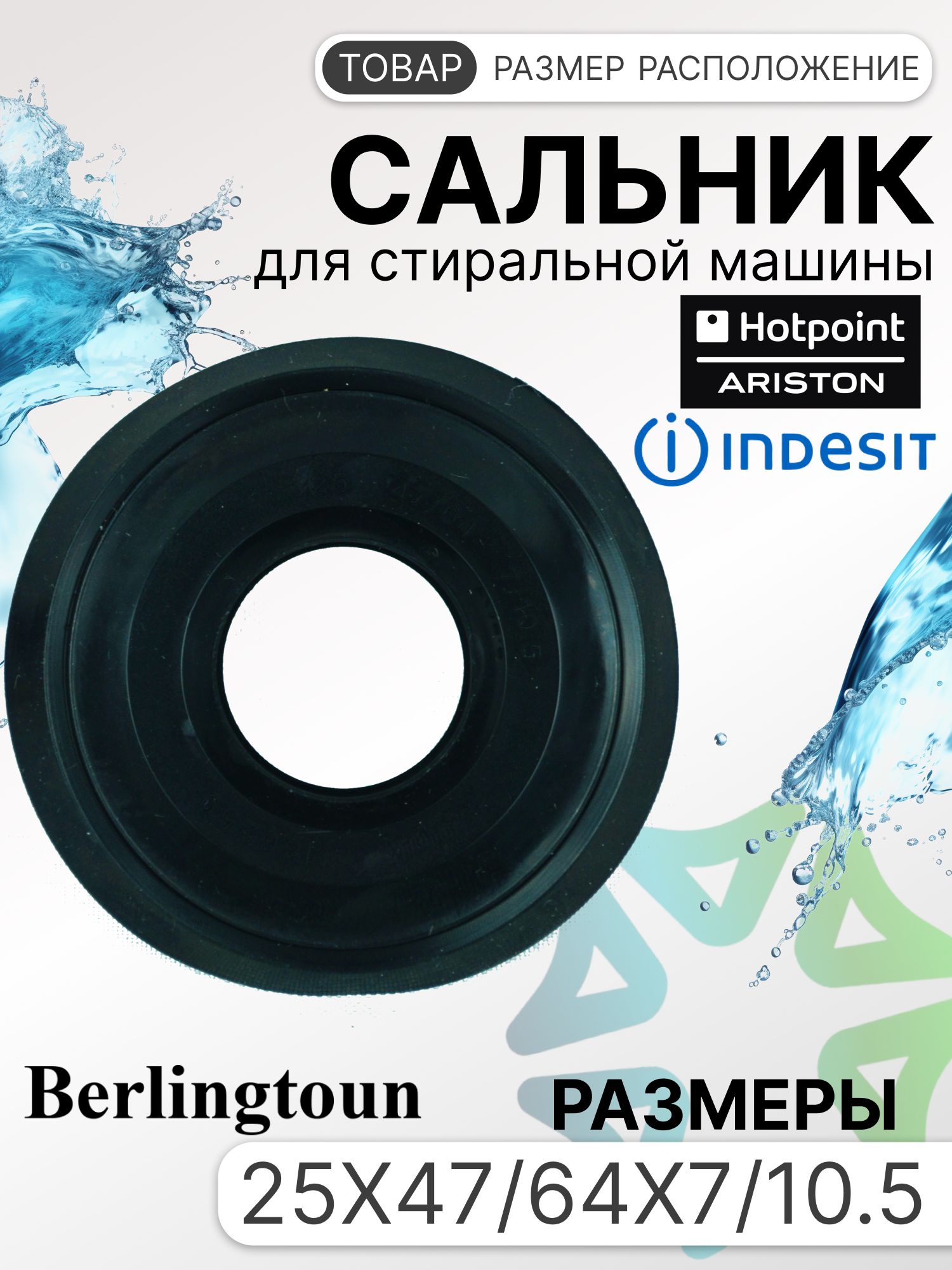 Сальник бака 25x47/64x7/10.5 от Berlingtoun представляет собой деталь, способную предотвратить проникновение влаги в подшипник и защитить его от повреждений. Данная запчасть используется в стиральных машинах марок Hotpoint-Ariston, Indesit. Оригинальный код: C00042890.