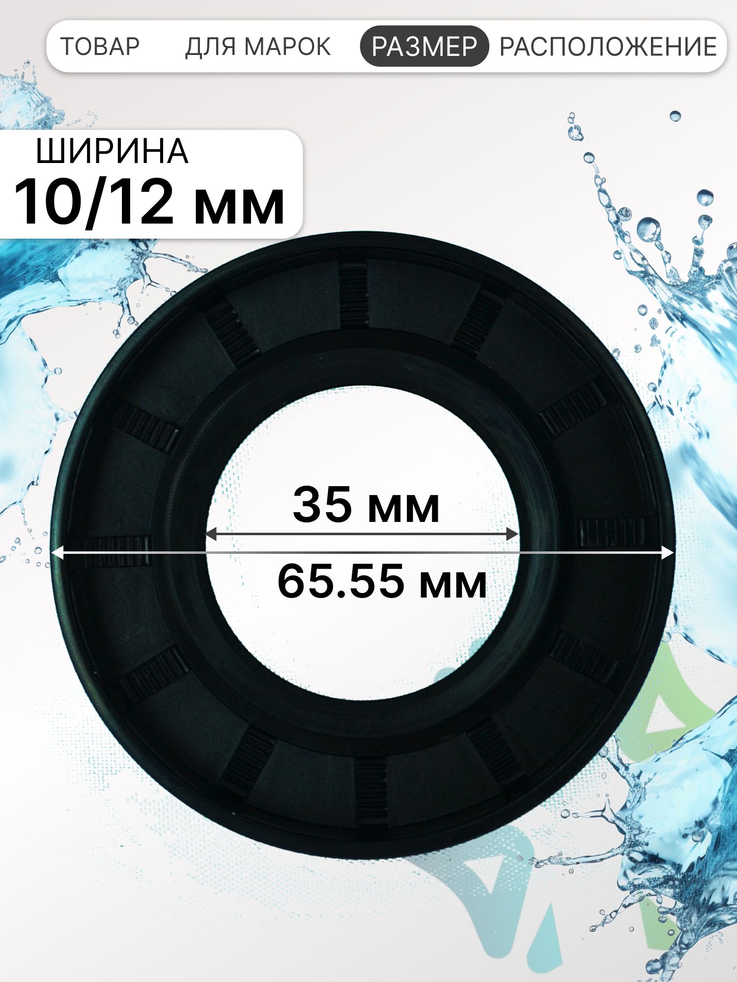 Внутренний диаметр данного сальника бака составляет 35 мм, внешний диаметр – 65.55мм, а толщина – 10/12 мм. Точные и устойчивые размеры позволяют сальнику надежно защищать подшипниковые узлы от попадания влаги и обеспечивать длительную и бесперебойную работу стиральной машины.