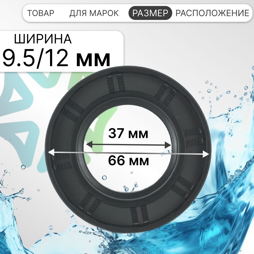 Внутренний диаметр данного сальника бака составляет 37 мм, внешний диаметр – 66 мм, а толщина – 9.5/12 мм. Точные и устойчивые размеры позволяют сальнику надежно защищать подшипниковые узлы от попадания влаги и обеспечивать длительную и бесперебойную работу стиральной машины.