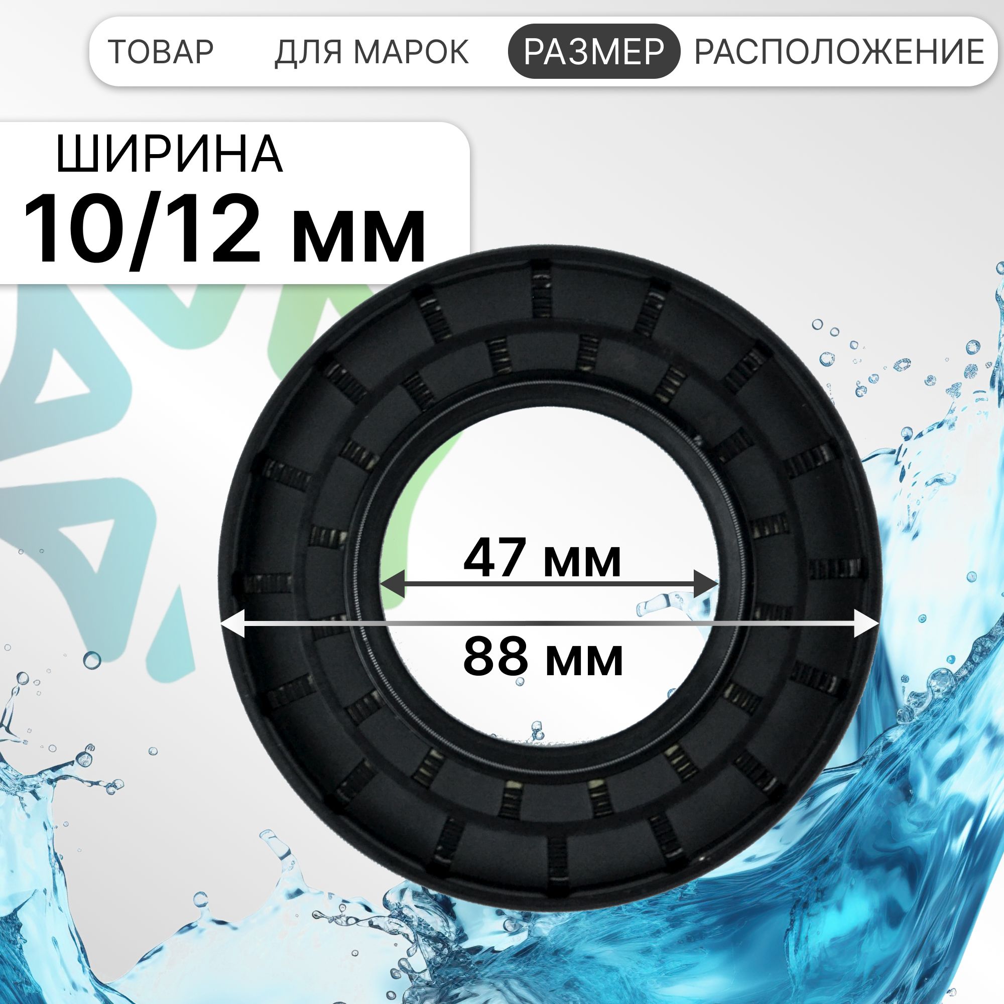 Внутренний диаметр данного сальника бака составляет 47 мм, внешний диаметр – 88 мм, а толщина – 10/12 мм. Точные и устойчивые размеры позволяют сальнику надежно защищать подшипниковые узлы от попадания влаги и обеспечивать длительную и бесперебойную работу стиральной машины.