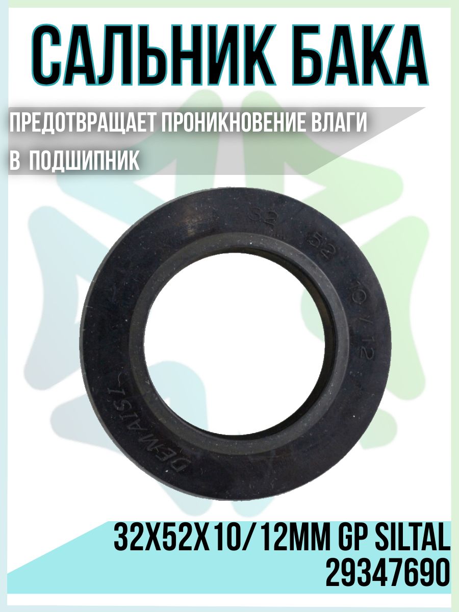 Внутренний диаметр данного сальника бака составляет 32 мм, внешний диаметр – 52 мм, а толщина – 10 мм(или 12 мм, с учетом юбки). Точные и устойчивые размеры позволяют сальнику надежно защищать подшипниковые узлы от попадания влаги и обеспечивать длительную и бесперебойную работу стиральной машины.