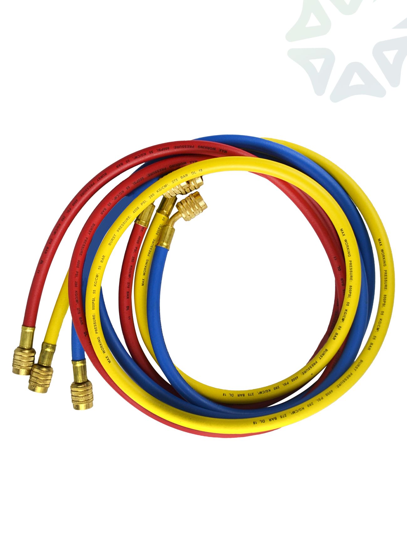 Эргономичная конструкция и гибкость шлангов делают их простыми в эксплуатации, обеспечивая комфорт при выполнении различных задач, связанных с обслуживанием и ремонтом холодильного оборудования. Компактные размеры и возможность компактного хранения позволяют всегда держать комплект под рукой, готовым к использованию в любой момент. Комплект идеально подходит для выполнения широкого спектра сервисных работ, включая заправку хладагента, вакуумирование системы, диагностику утечек и техническое обслуживание. При соблюдении правил эксплуатации и хранения (в сухом месте при температуре от -20°C до +60°C) шланги сохраняют свои рабочие характеристики на протяжении длительного времени, обеспечивая надёжную работу в самых различных условиях эксплуатации.