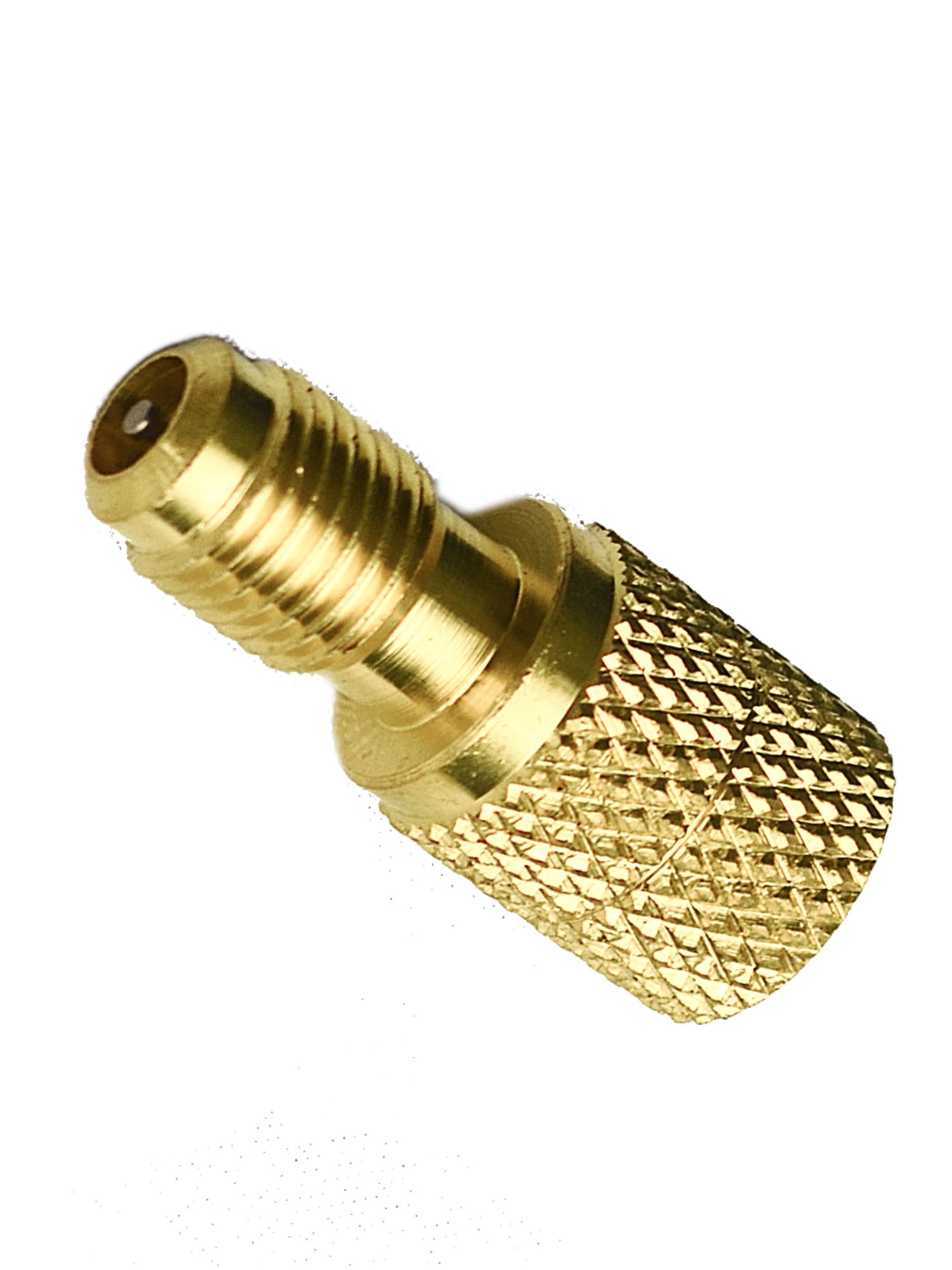 Штуцер-адаптер AD87 - это незаменимый инструмент для профессионалов, занимающихся обслуживанием и заправкой систем кондиционирования. Он предназначен для соединения заправочных шлангов стандарта 5/16" SAE (R410A), которые широко используются в старых моделях кондиционеров, с современными системами, работающими на фреоне R22, использующим соединение 1/4" SAE .