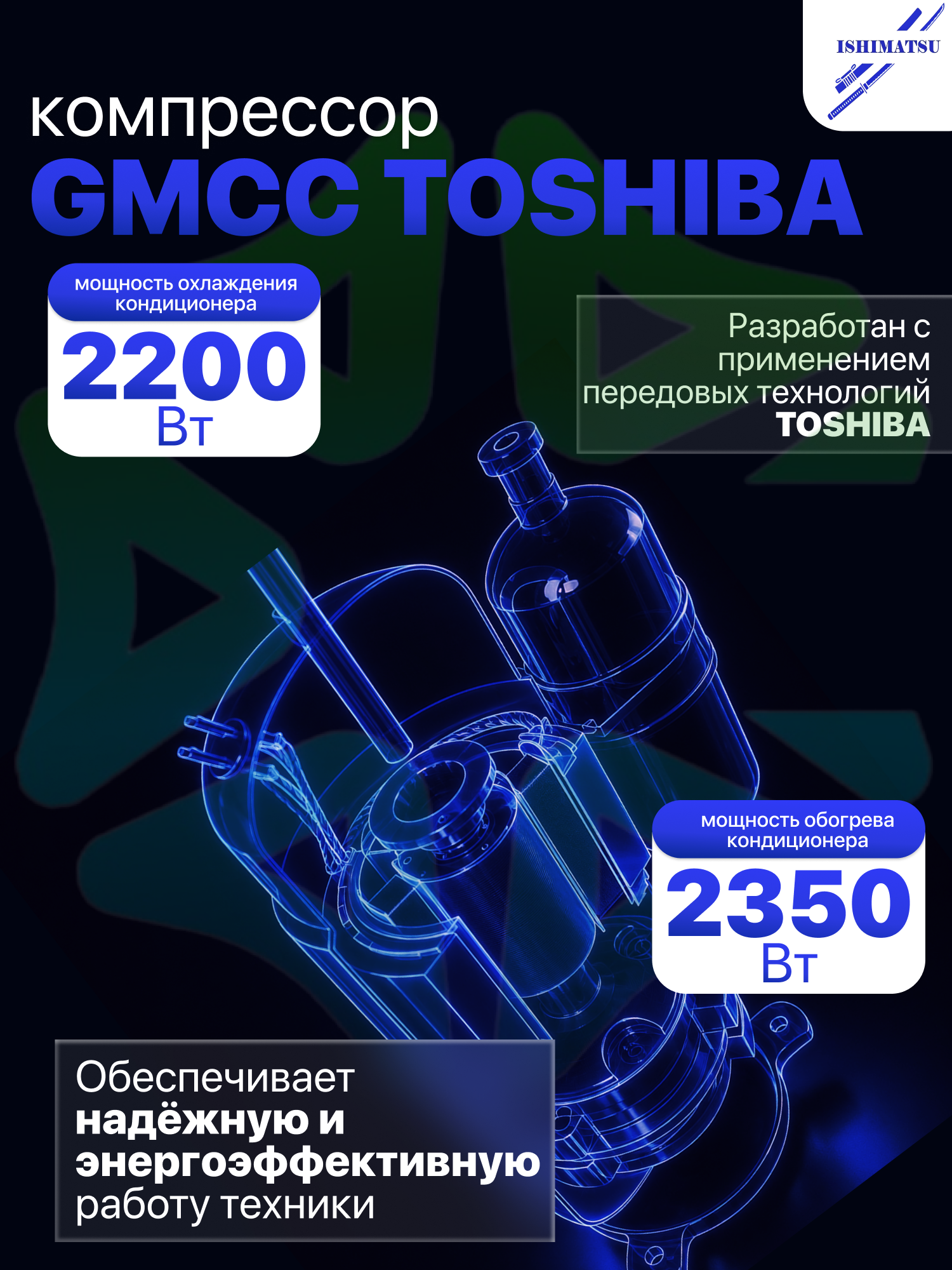• Компрессор GMCC (TOSHIBA) — высокая надёжность, стабильная работа в широком диапазоне температур.