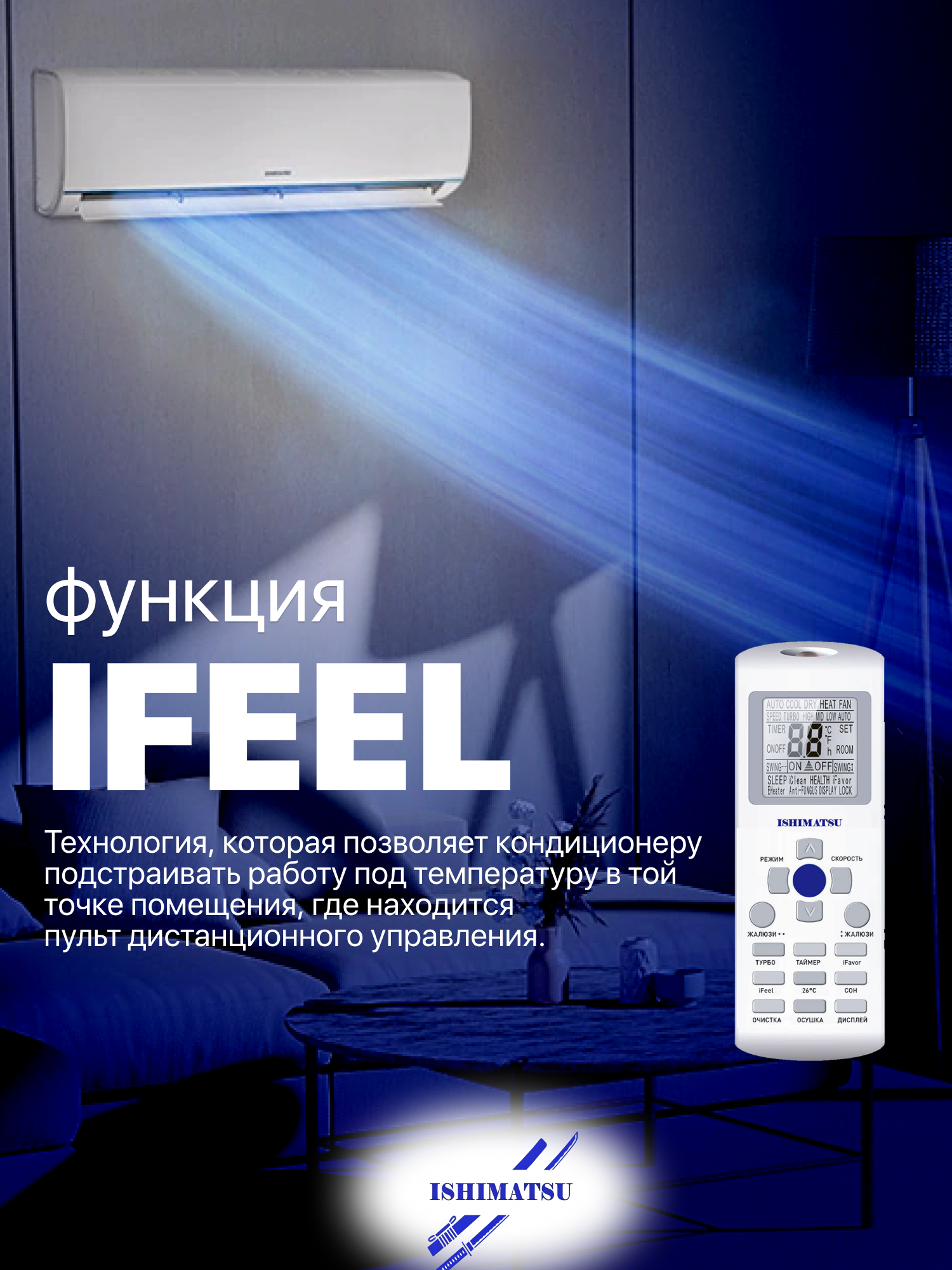 • iFeel — датчик температуры в пульте: кондиционер подстраивается под условия там, где находится пользователь.