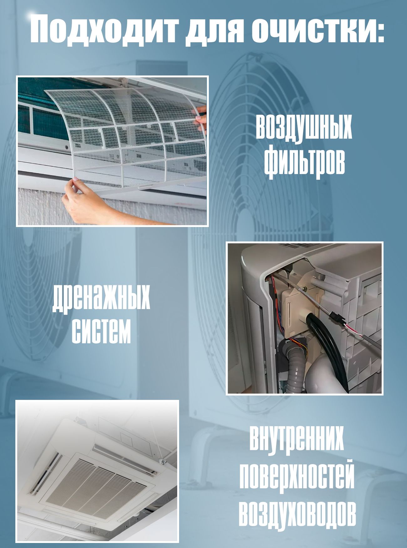 Комплексное действие очистителя гарантирует не только безупречную чистоту всех элементов системы, но и создает безопасные условия для эксплуатации климатического оборудования, защищая здоровье пользователей.