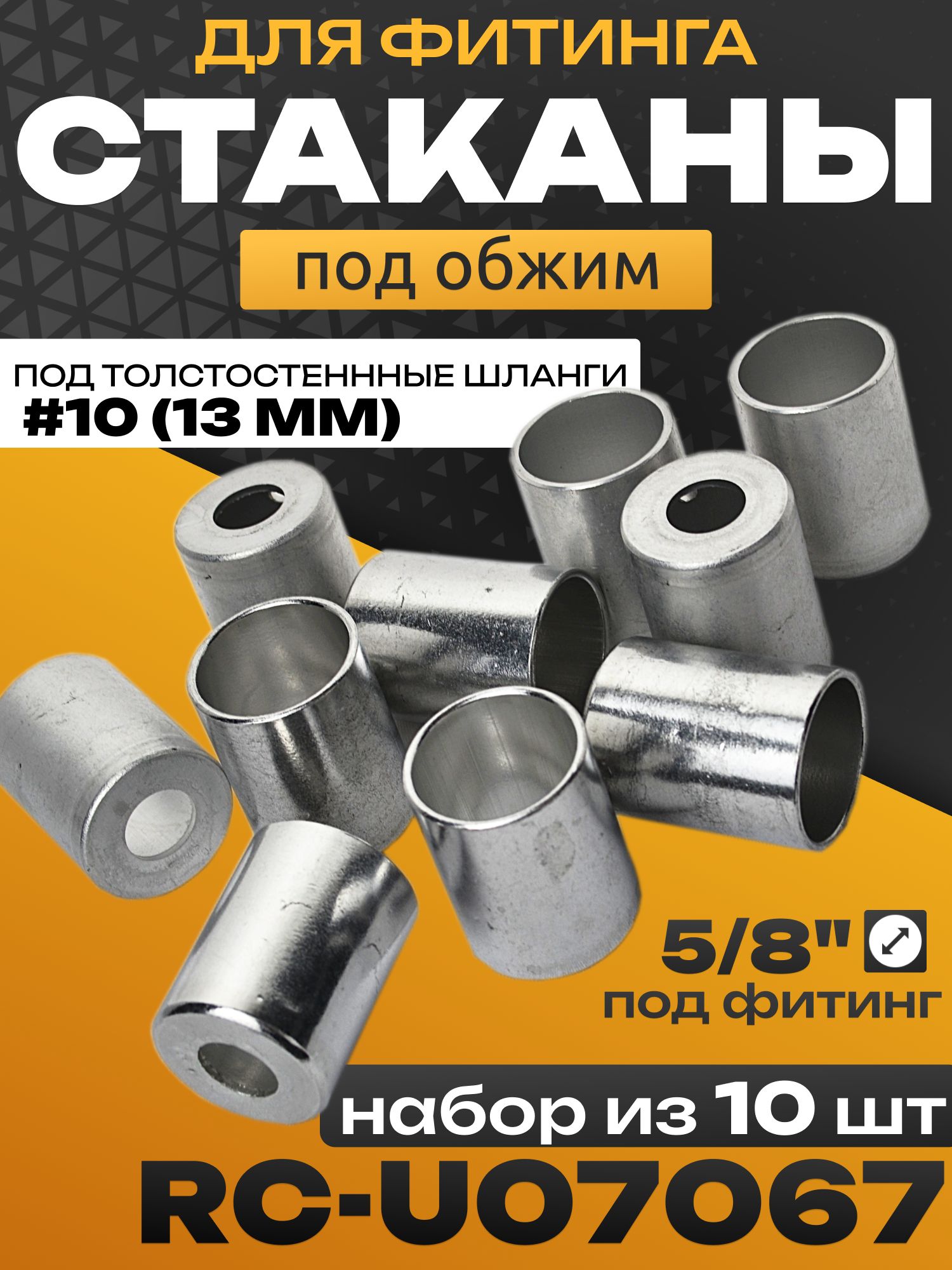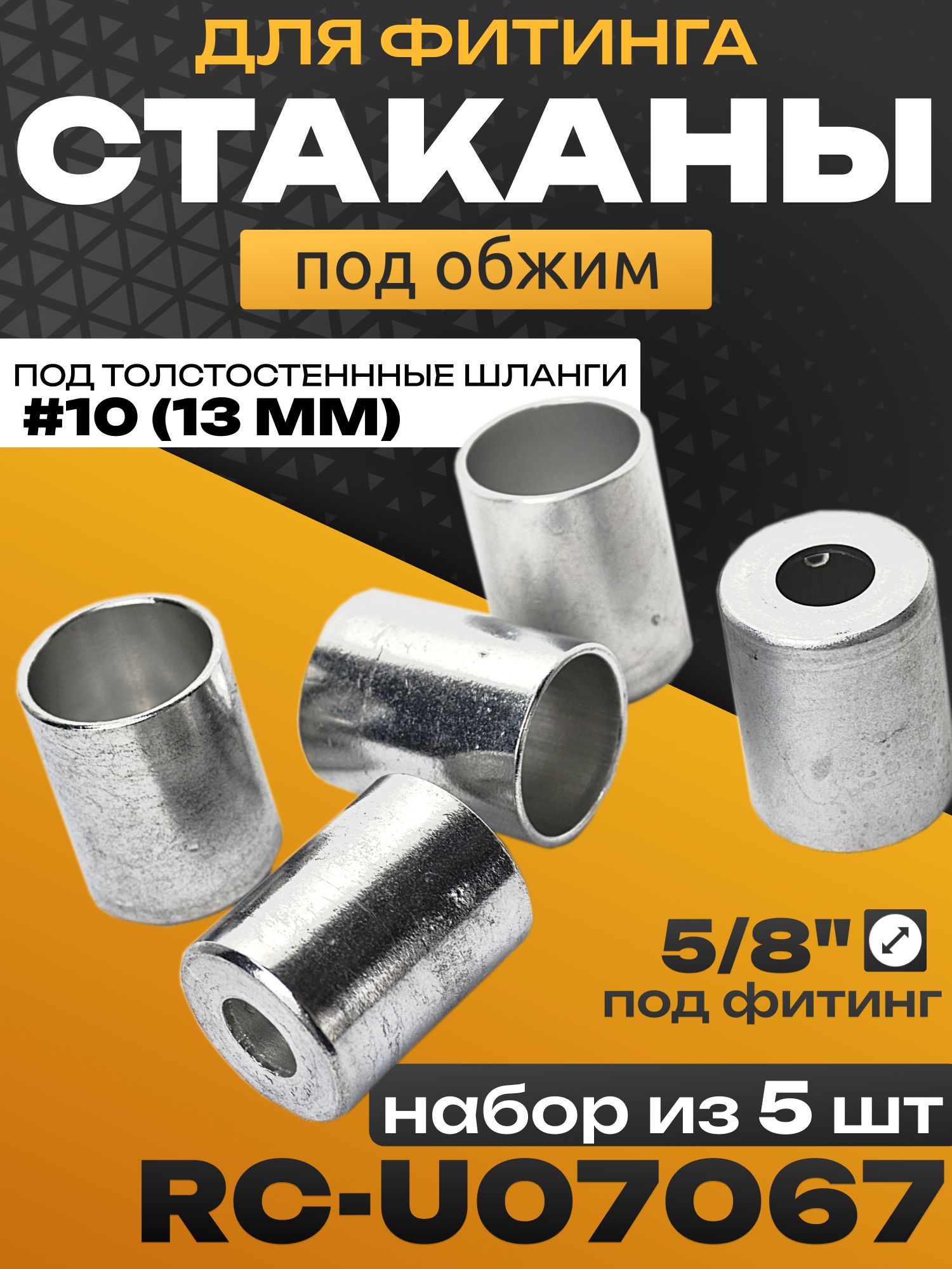 Стакан RC-U07067 (13-1467) – это надежный элемент для создания герметичных соединений в системах автомобильного кондиционирования. Разработанный специально для фитингов 5/8" и толстостенных шлангов #10 ( №10 ) (13 мм), этот алюминиевый обжимной стакан обеспечивает прочное и долговечное соединение участков трубопровода. Стакан RC-U07067 также известен как обжимная гильза, что отражает принцип его работы. Предлагаемый комплект включает в себя 5 штук стаканов RC-U07067.