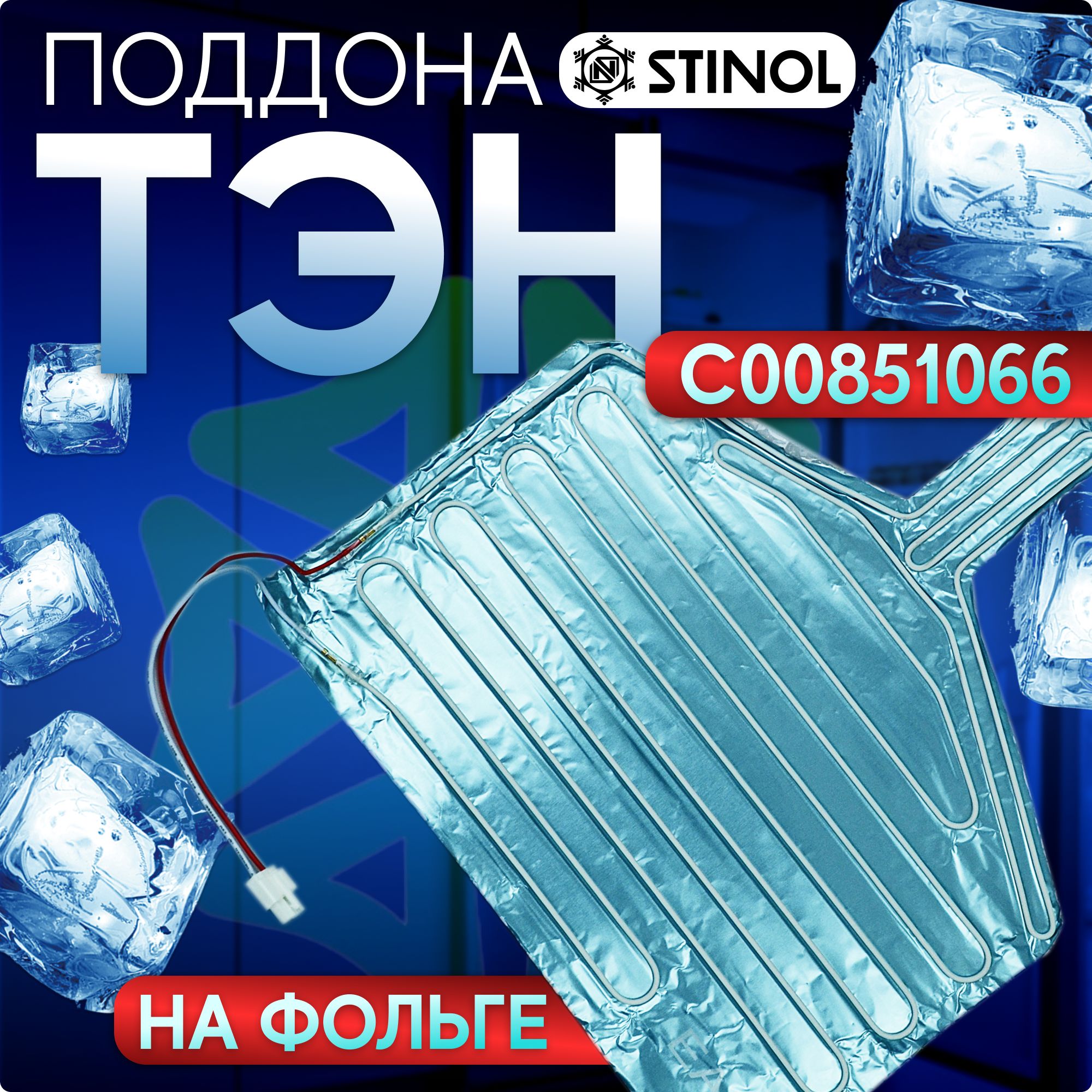 ТЭН C00851066 на фольге - запчасть для подогрева поддона испарителя при выводе талой воды из системы «No Frost» в холодильном оборудовании. Данный ТЭН поддона каплепадения используется в холодильниках марок : Ariston, Hotpoint-Ariston и Stinol.