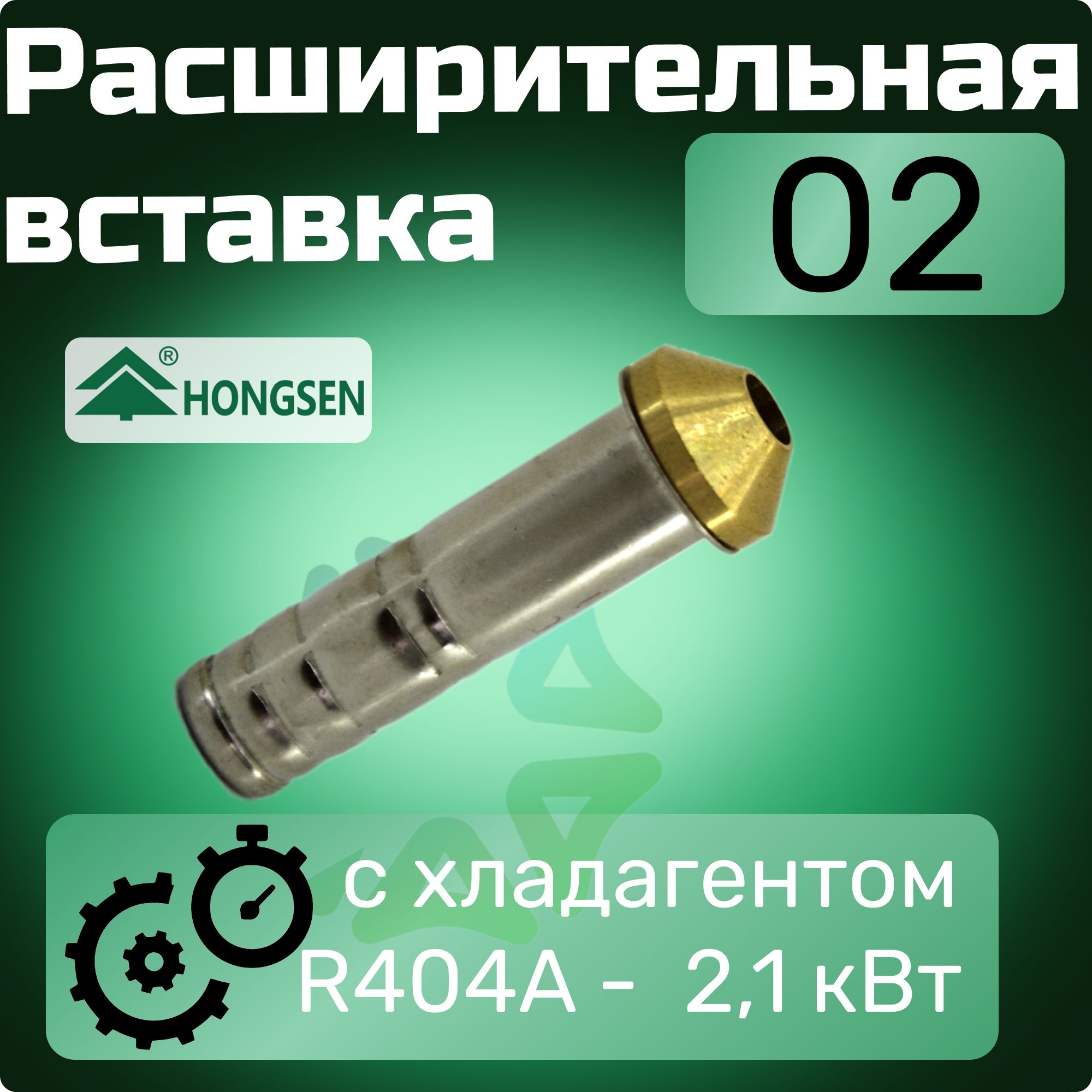В комплекте с терморегулирующим вентилем TH404W идет дросселирующая вставка 02, или регулирующая вставка 02, которая предназначена для использования с неразборными терморегулирующими вентилями HONGSEN серии ТРВ TH 404W. Эта вставка обеспечивает производительность до 2,1 кВт с хладагентом R404A.
