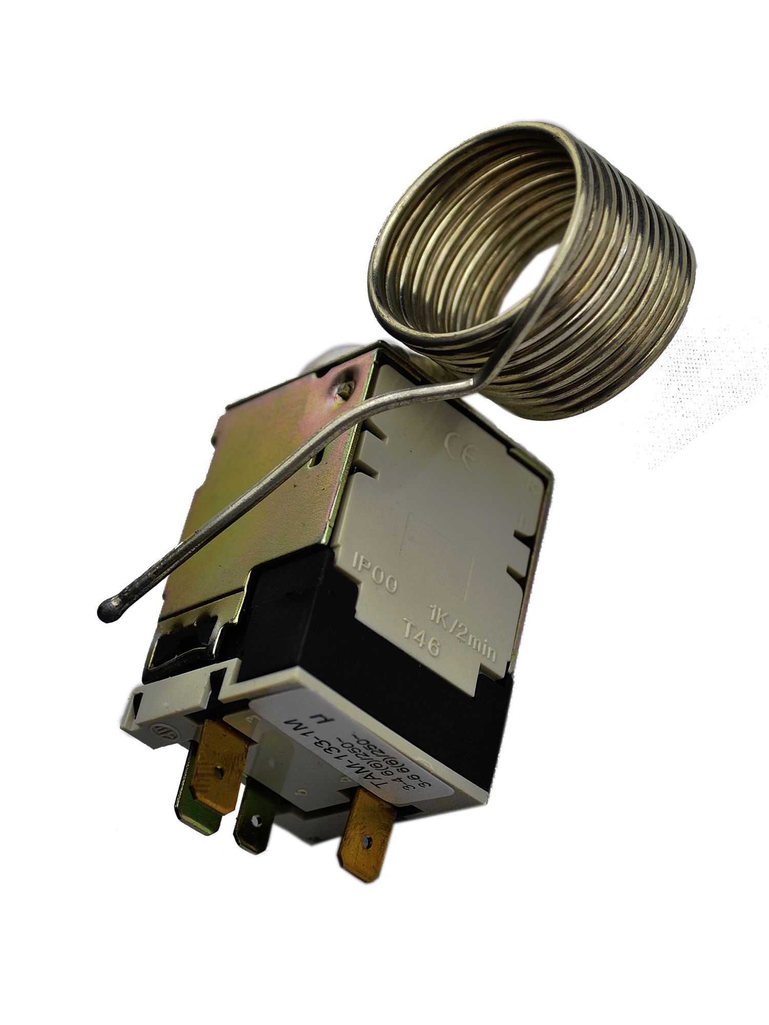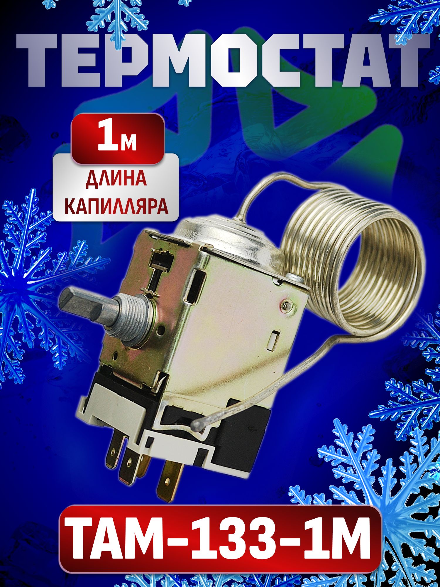 Термостат ТАМ-133-1М - терморегулятор косвенного метода, который используется для регулировки температуры воздуха в холодильных камерах отечественных двухкамерных холодильников, включая и выключая компрессор в зависимости от текущей температуры, что позволяет поддерживать стабильную температуру, предотвращая излишний холод или перегрев внутри. Данное устройство ТАМ-133-1 М представляет собой корпус с расположенными переключающими контактами, сильфоном с мембраной и выходящей из него трубкой сильфона, являющейся непосредственно датчиком температуры.