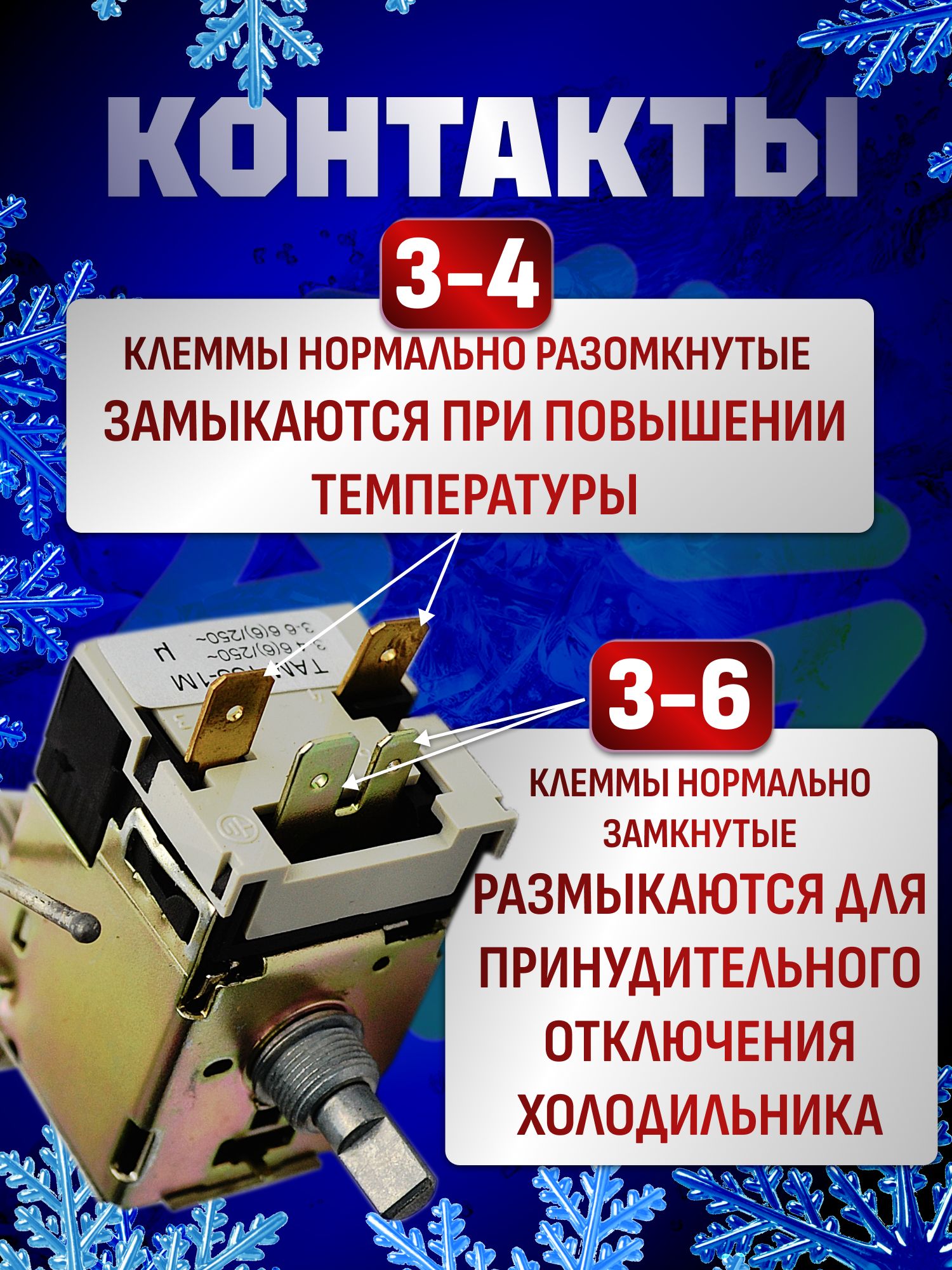 Контакты 3-6 - нормально замкнутые клеммы, размыкаются для принудительного отключения холодильника.