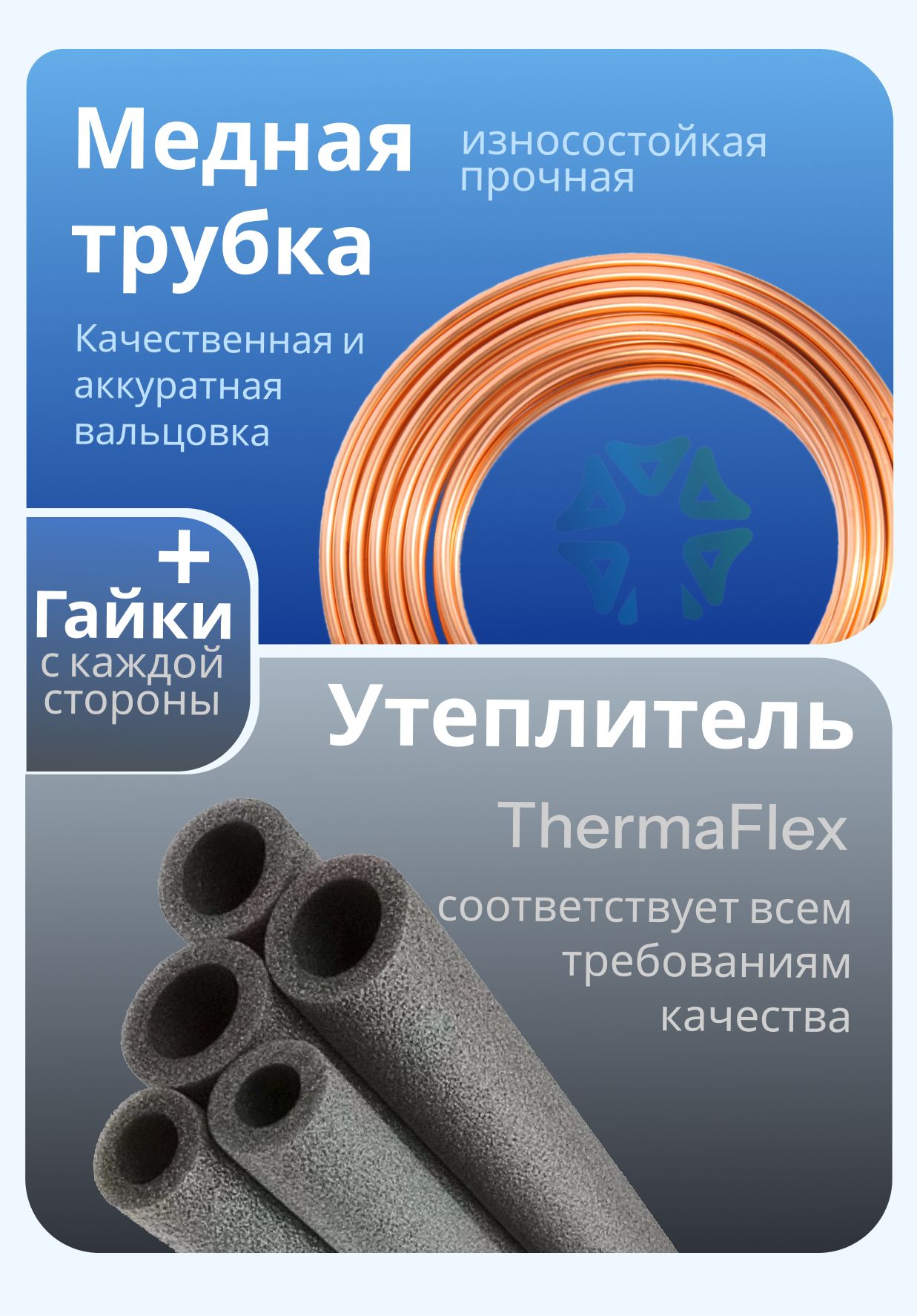 В комплектацию входят две медные трубы в теплоизоляции: