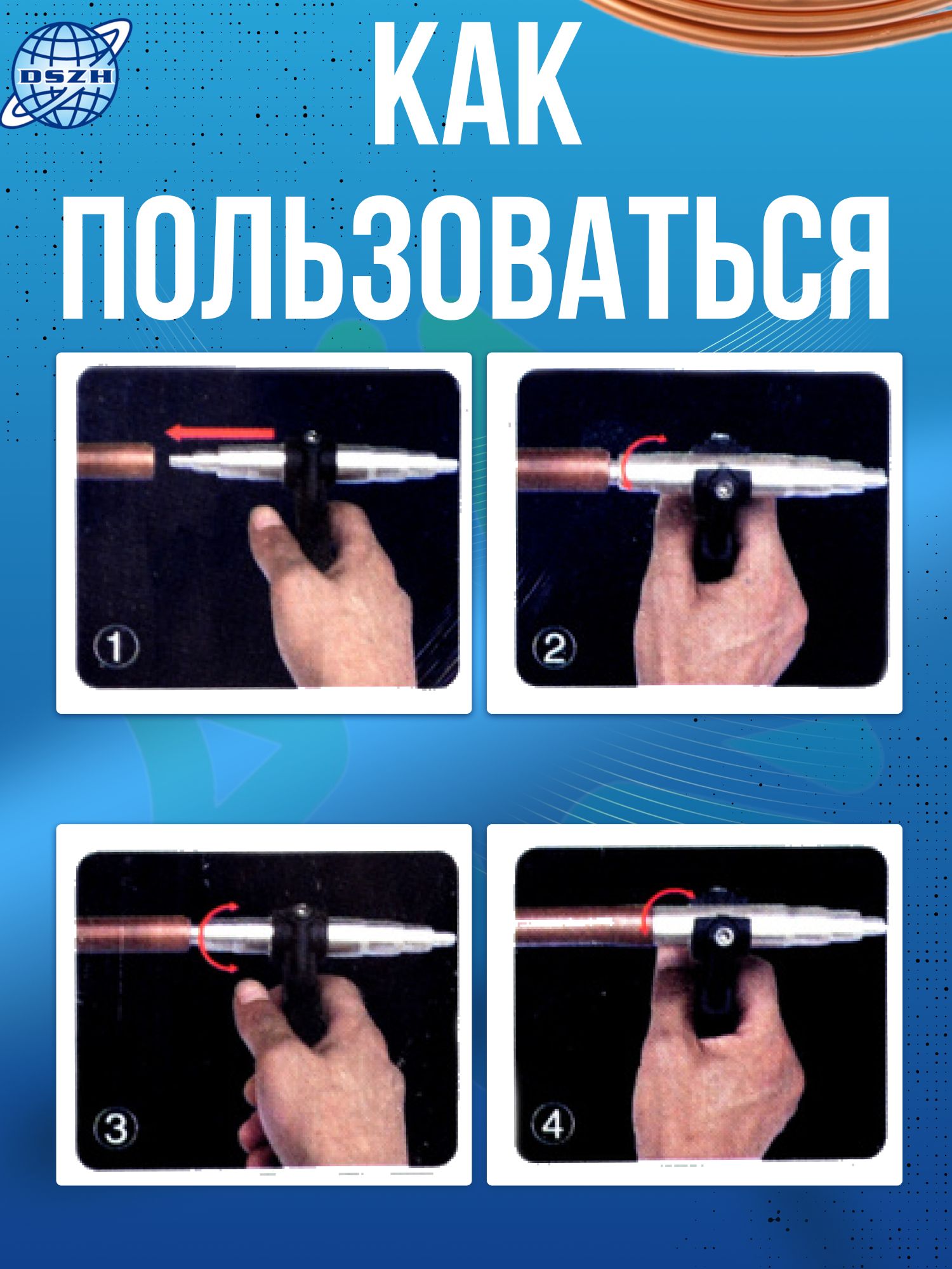 Простота использования – еще одно важное преимущество труборасширителя DSZH WK-622. Расширение трубы осуществляется легким нажатием и одновременным круговым движением инструмента. Эта технология позволяет быстро и эффективно расширять трубы, не требуя значительных усилий. Компактный и легкий дизайн обеспечивает удобство в работе и хранении.