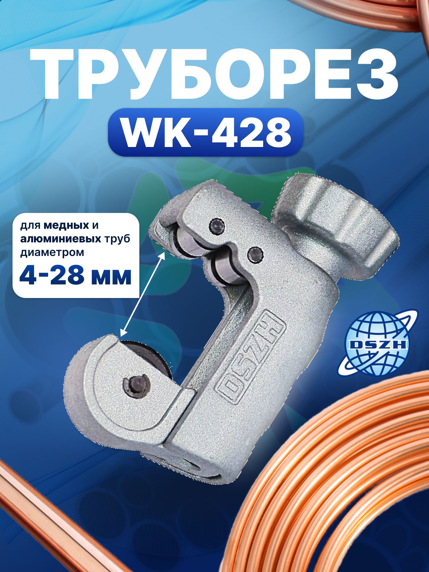 Труборез ручной DSZH WK-428 3/16"- 1 1/8" ( 1/8"- 1 1/8" ) (4-28 мм) – незаменимый инструмент для профессионалов и домашних мастеров, работающих с медными и алюминиевыми трубами. Он обеспечивает чистый и аккуратный рез, строго перпендикулярный оси трубы, без образования заусенцев и опилок, что значительно упрощает дальнейшую обработку и монтаж.