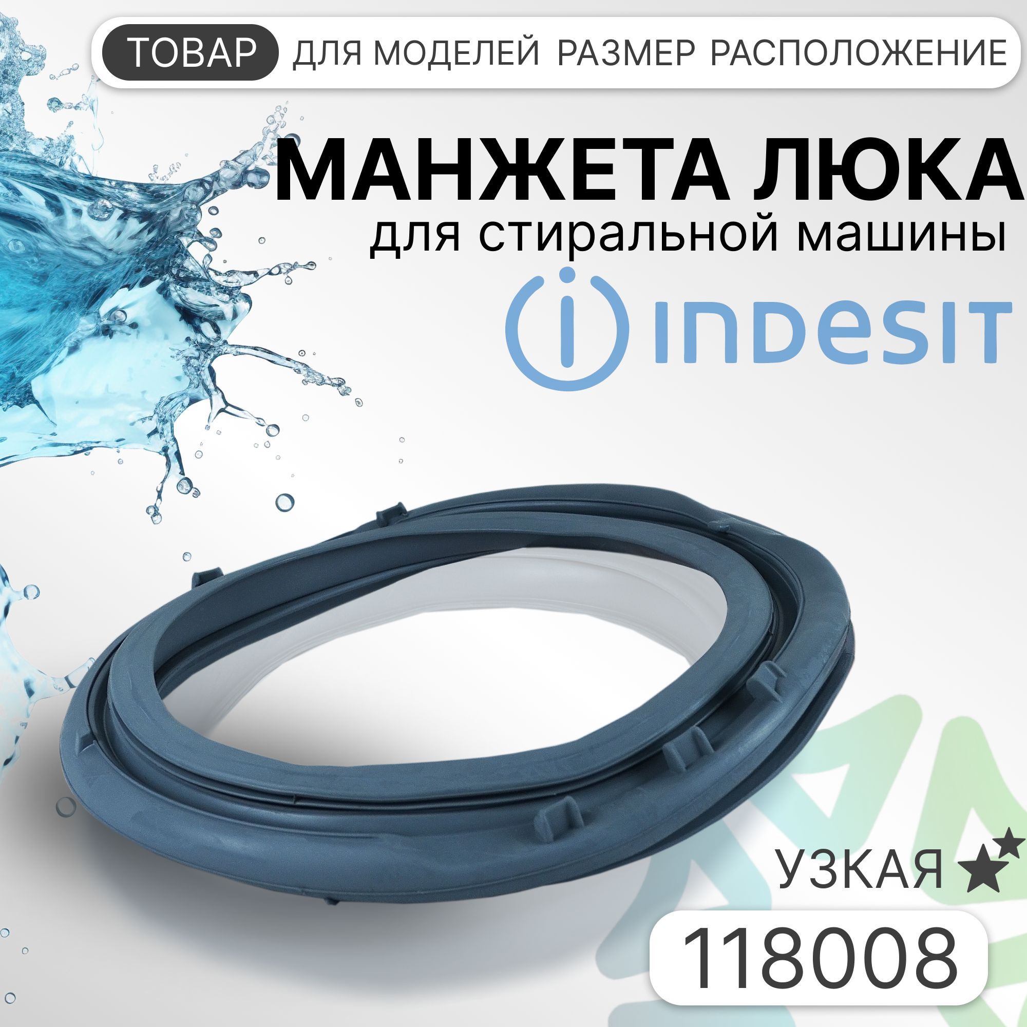 Самая ходовая манжета люка 118008 (узкая) Оригинал для стиральной машины Indesit — это резиновый уплотнитель, который располагается между баком и передней стенкой корпуса, повторяя форму люка. Такой уплотнитель предназначен для плотного закрывания дверцы, чтобы вода не протекала наружу, а также для защиты от вибрации и предотвращения проникновения внешних элементов внутрь машины.