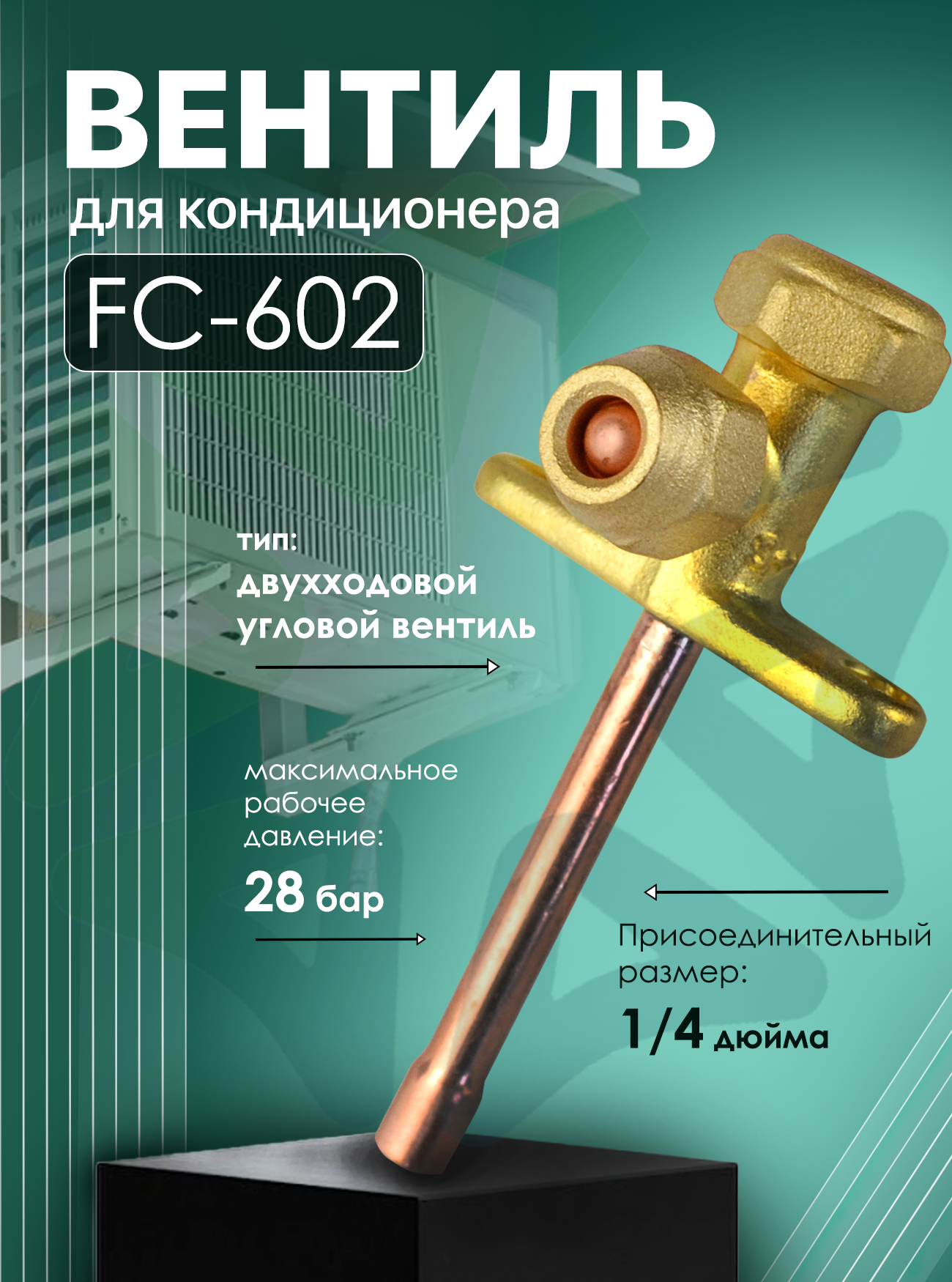 Вентиль FC‑602 1/4" представляет собой надёжное и удобное решение для профессионального и самостоятельного обслуживания кондиционеров. Он упрощает диагностику и заправку, повышает безопасность работ, снижает эксплуатационные расходы и способствует продлению срока службы климатического оборудования.