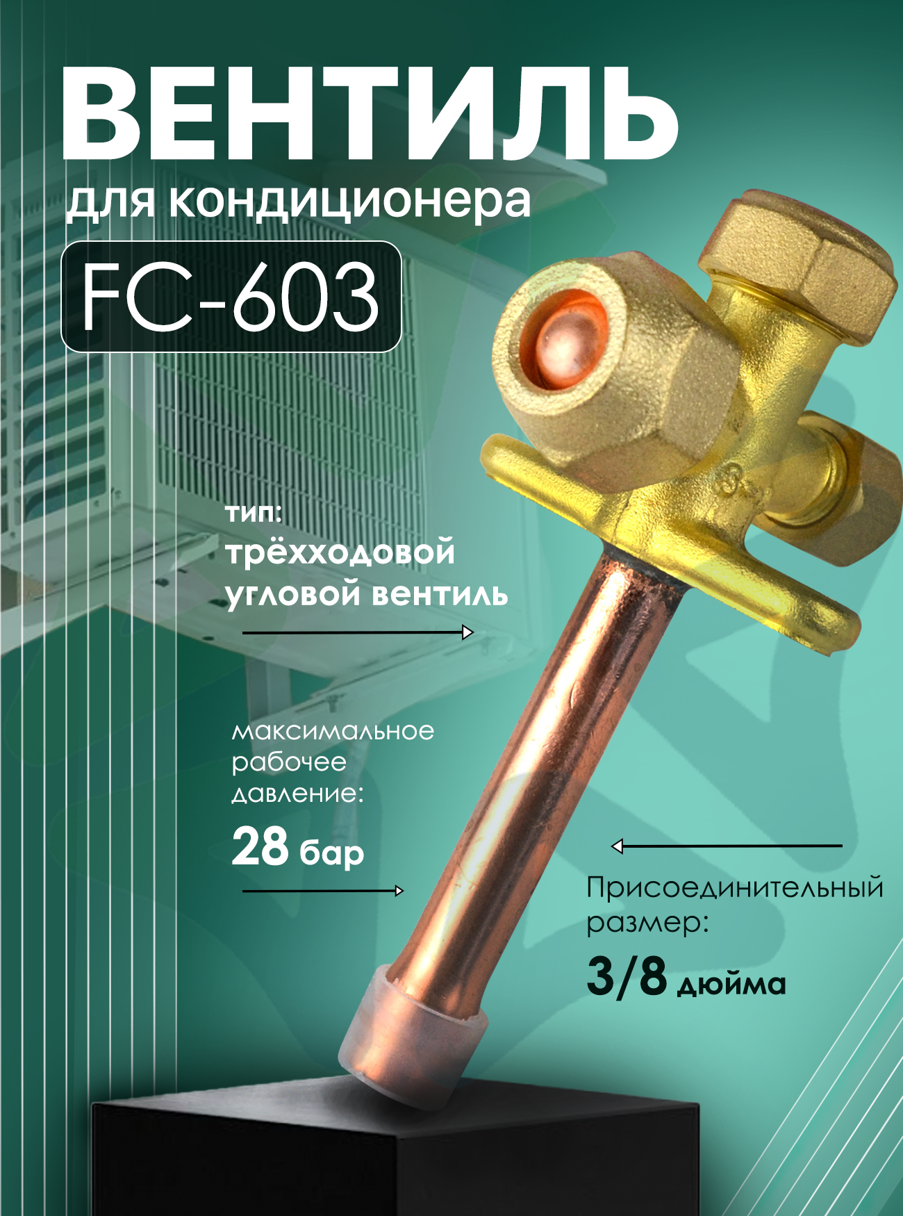Вентиль FC‑603 3/8" представляет собой надёжное и удобное решение для профессионального и самостоятельного обслуживания кондиционеров. Он упрощает диагностику и заправку, повышает безопасность работ, снижает эксплуатационные расходы и способствует продлению срока службы климатического оборудования.
