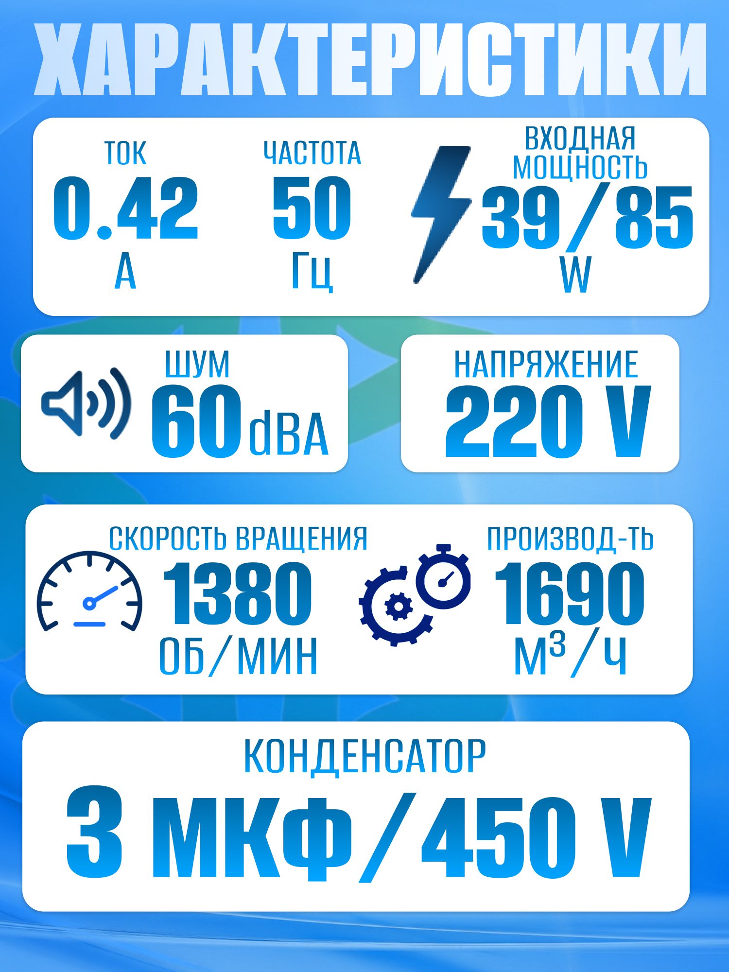 · Скорость вращения: 1380 об/мин. Высокая скорость вращения способствует быстрому перемещению воздуха;