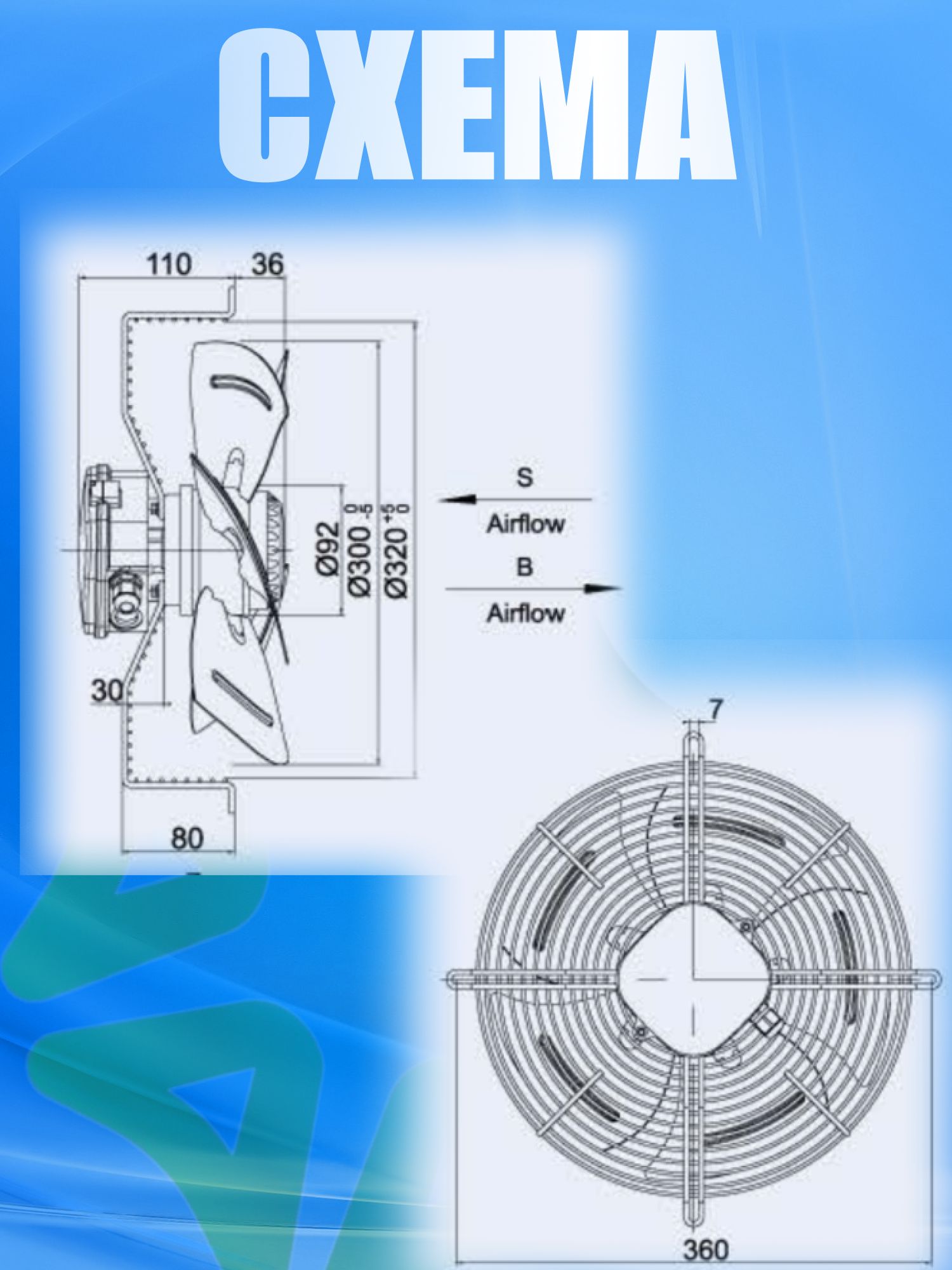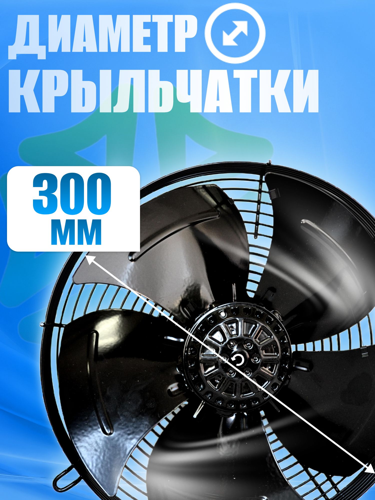 · Диаметр крыльчатки: 300 мм. Это обеспечивает высокую производительность и эффективность работы вентилятора;