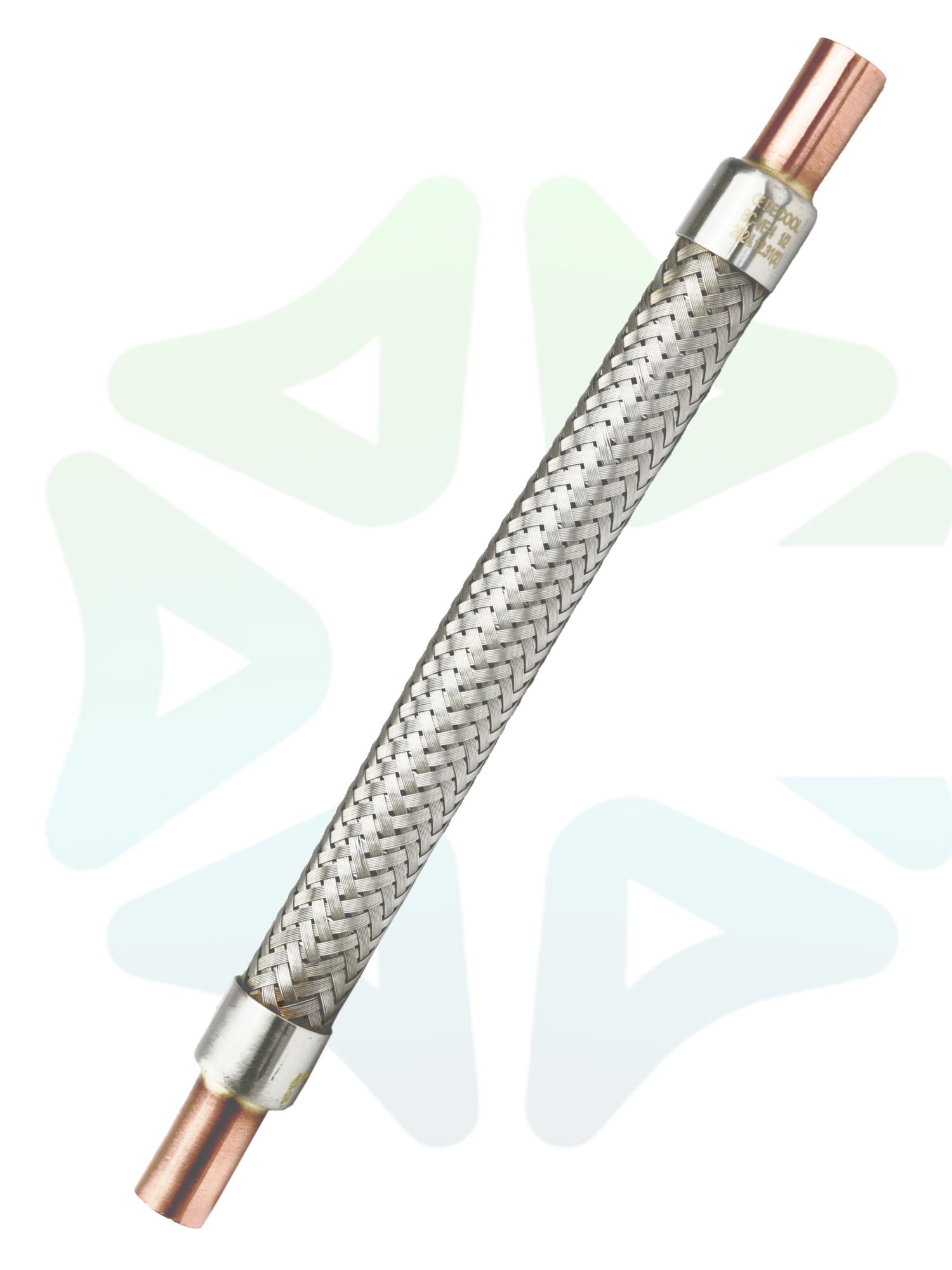 Виброгаситель BC-VE-4 с присоединительным размером 1/2" и типом соединения под пайку или сварку выдерживает рабочее давление до 34 бар. Удлиненные медные патрубки предотвращают перегрев при монтаже, а концы проволочной оплетки обжаты металлическим обручем для дополнительной прочности. Каждый виброгаситель Becool имеет фирменный логотип и маркировку с указанием наименования, марки и размеров присоединительного патрубка.