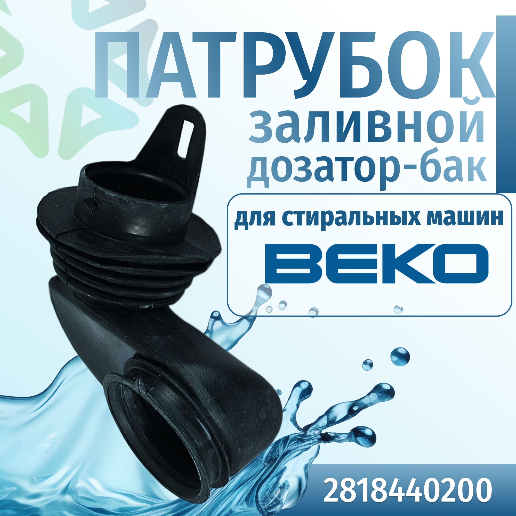 Патрубок заливной порошкоприемник-бак 2818440200 - это гофрированная резиновая труба в стиральной машине, которая соединяет порошкоприемник (дозатор) с баком. Данная запчасть подойдет к стиральным машинам марок Beko. Патрубок без хомутов и поставляется без шарика.