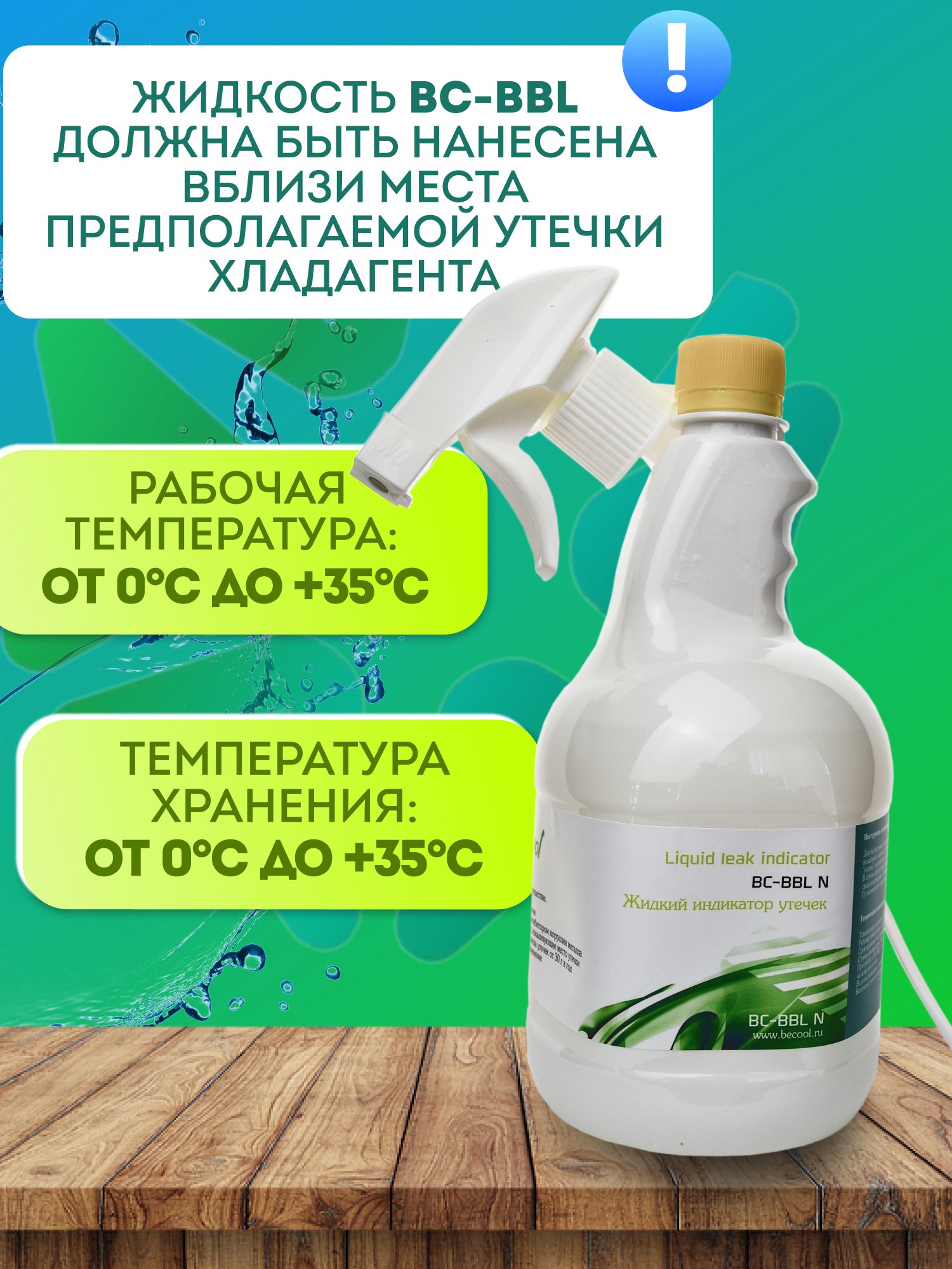 Жидкость должна быть нанесена вблизи места предполагаемой утечки хладагента. Благодаря своей уникальной формуле (BC-BBL является достаточно вязким, обладает хорошей адгезией с поверхностью) он долго не высыхает, образуя в месте утечки хладагента устойчивые пузыри.